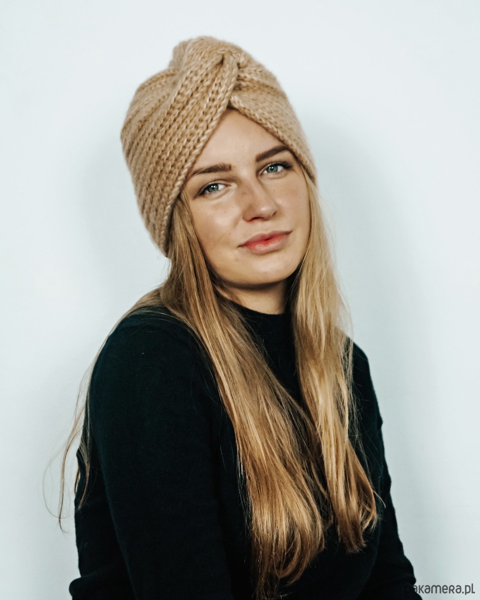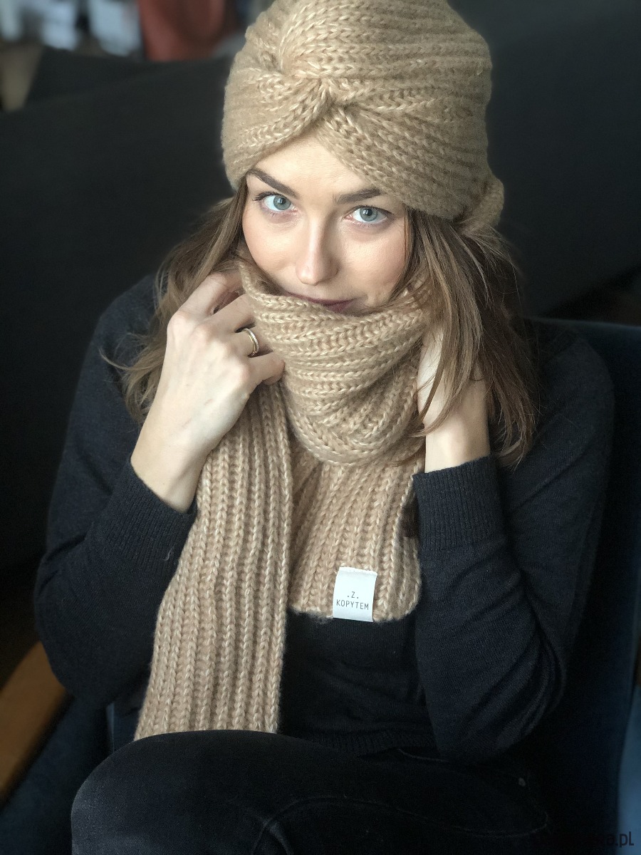 Piękny jesienno-zimowy turban z miękkiej i puchatej przędzy, naturalnej mieszanki wełny merino i bawełny czesanej. Wyjątkowy, mięciutki i niezwykle twarzowy. Dobrze dopasowuje się do kształtu głowy.