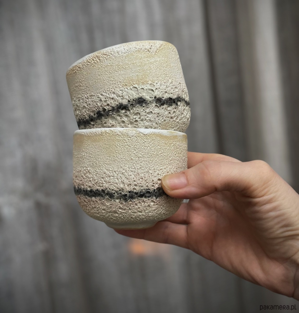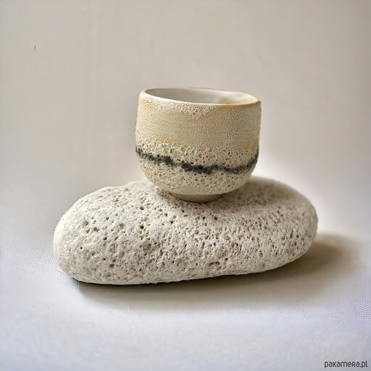 Ręcznie wykonana z jasnej gliny w kolorze beżu. Na zewnątrz unikatowe szkliwienie swoją strukturą i kolorem nawiązuje do nadmorskich kamieni znalezionych podczas spacerów na plaży. Kamienie mogą symbolizować spokój i relaks, a ich organiczny kształt i subtelne kolory potrafią przyczynić się do wyciszenia i odpoczynku. Trzymanie kamieni w dłoniach, nazywane także terapią kamieni, może pomóc nam skoncentrować się na chwili obecnej, zwiększyć świadomość własnego ciała i zmysłów. Jest to forma medytacji, która pomaga odprężyć umysł i znaleźć spokój.
