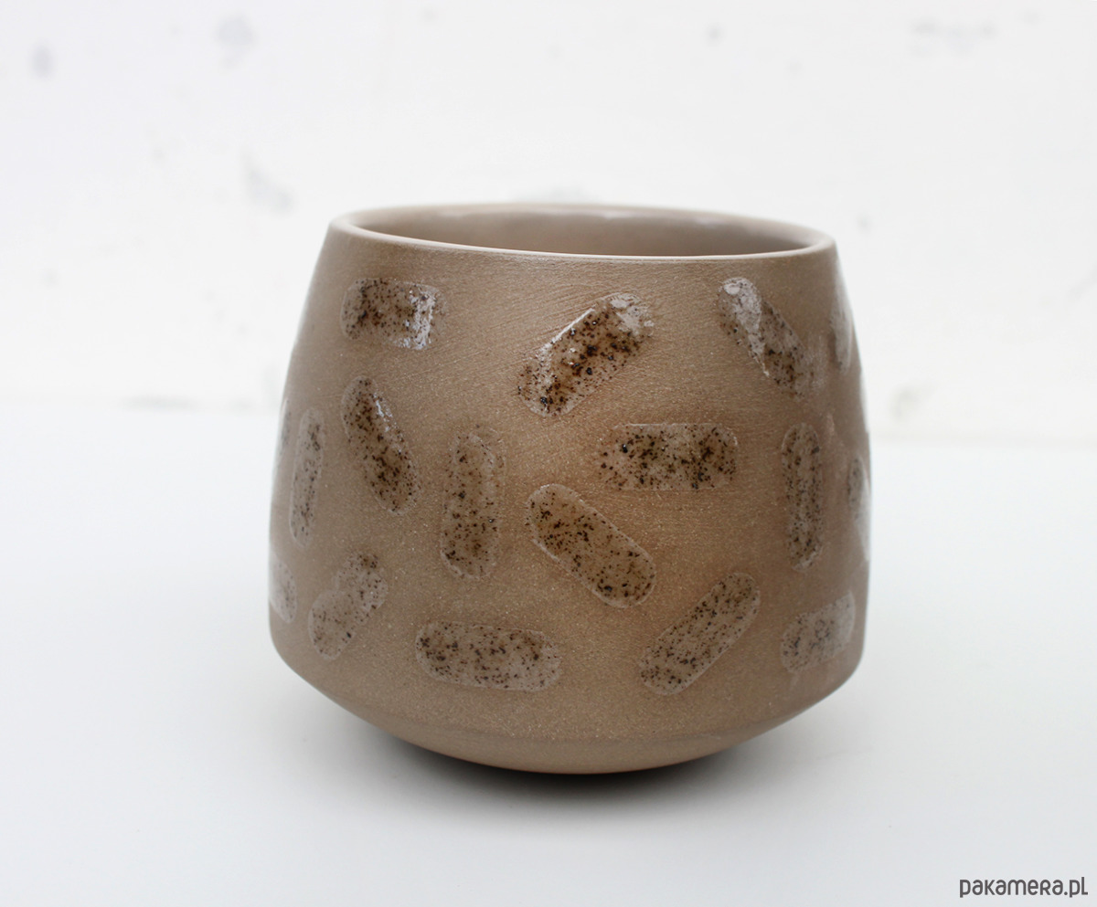 Barwiona kamionka w kolorze szarobrązowym + szkliwo. Czarka powstała w jednym egzemplarzu, istnieje możliwość zamówienia podobnych w większej ilości