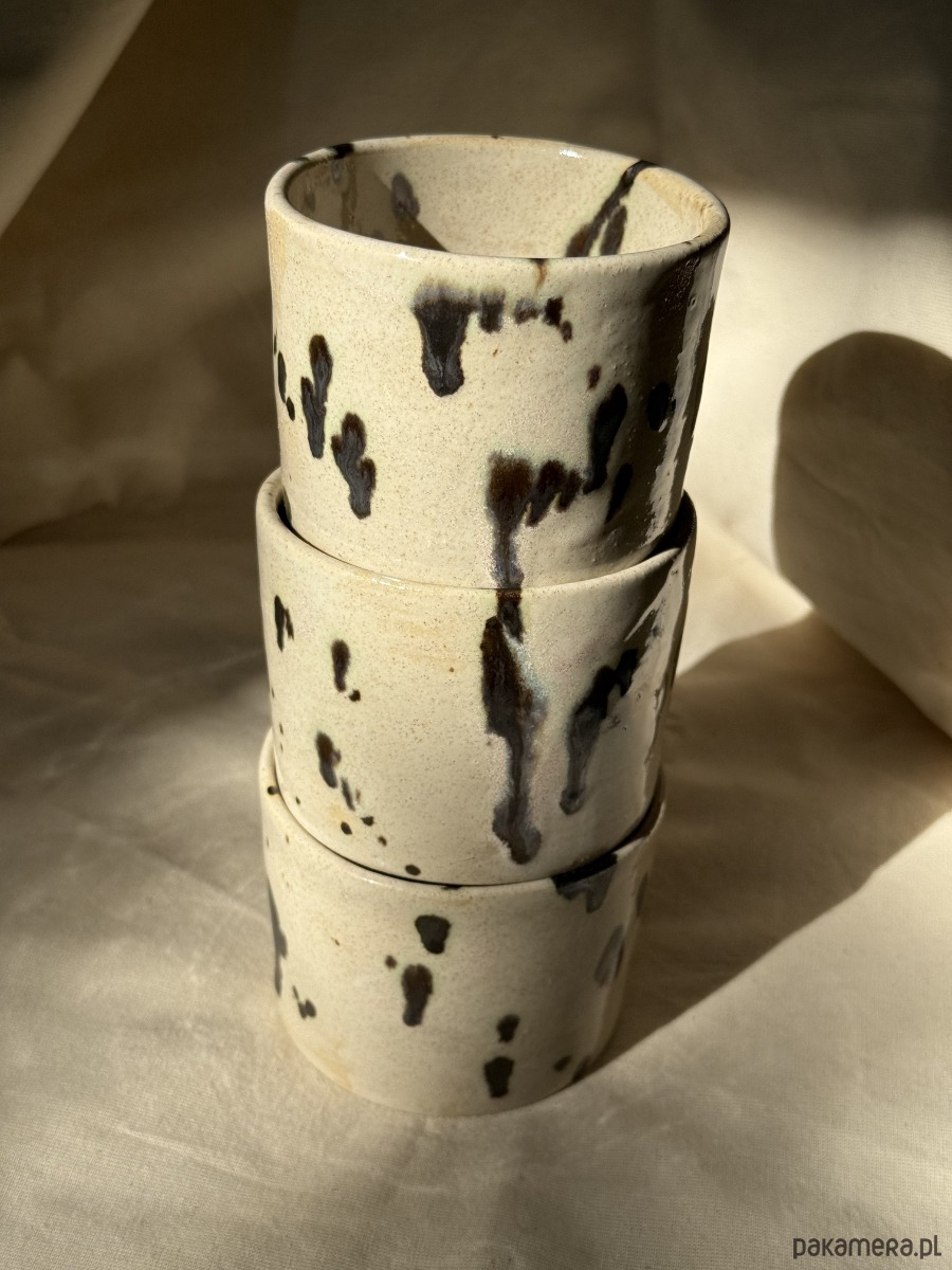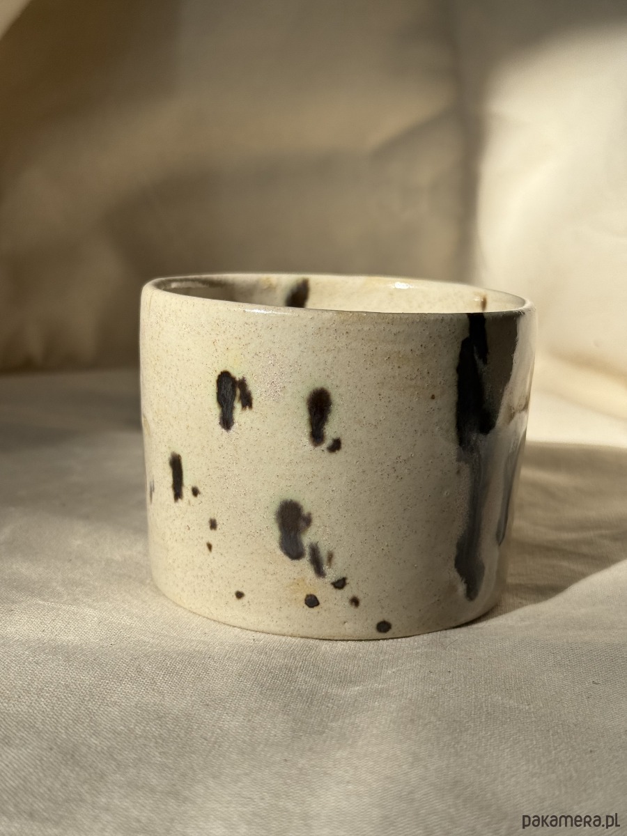 Ręcznie toczona czarka o subtelnym, beżowym odcieniu z delikatnymi złotymi i ciemnymi akcentami. Każda ma w sobie coś wyjątkowego – drobne różnice w szkliwie sprawiają, że żadna nie jest taka sama. Naturalna, przyjemna w dotyku i idealna do codziennych rytuałów.
