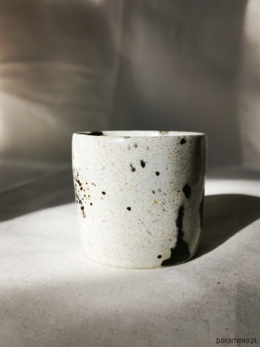 Ręcznie toczona czarka o subtelnym, beżowym odcieniu z delikatnymi złotymi i ciemnymi akcentami. Każda ma w sobie coś wyjątkowego – drobne różnice w szkliwie sprawiają, że żadna nie jest taka sama. Naturalna, przyjemna w dotyku i idealna do codziennych rytuałów.