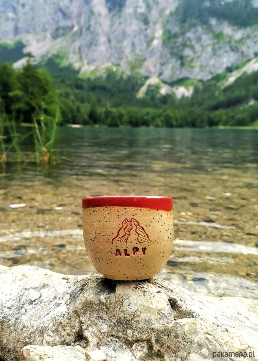 Toczona na kole, z ręcznie wykonanym rysunkiem gór i napisem Alpy – symbolem siły, wytrwałości i wolności.
