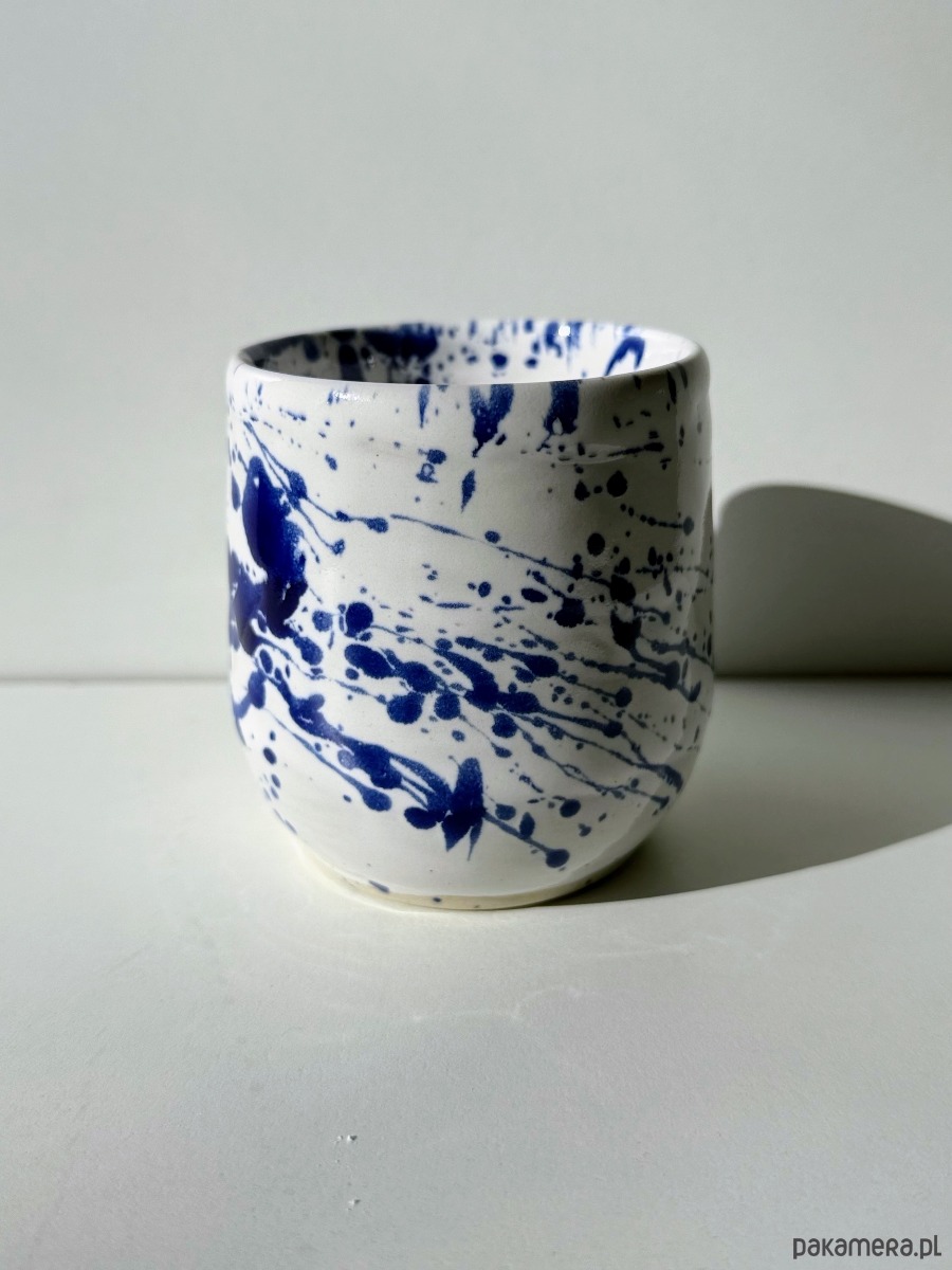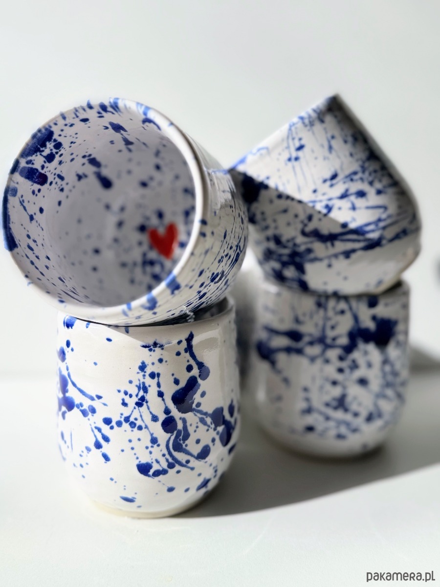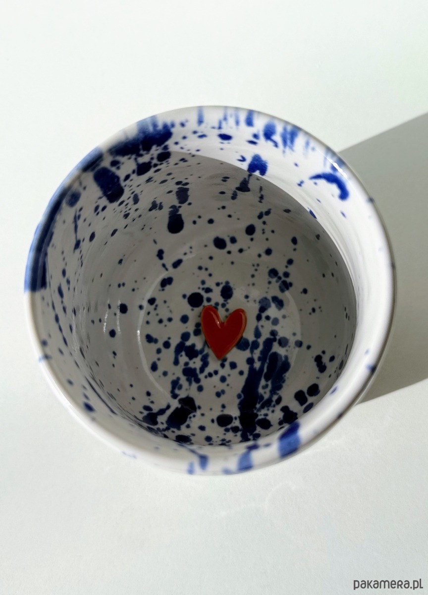 Czarka - baryłka, wykonana z jasnej gliny w podpoznańskiej pracowni. Pokryta białym szkliwem i ochlapana szkliwem granatowym kryje w środku niespodziankę - czerwone serduszko.