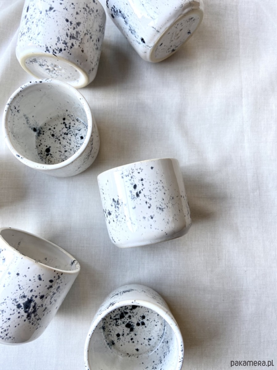 Kubek/czarka z serii black ink bez ucha dla miłośników małych porcji ulubionych napojów. W 100% wykonany ręcznie