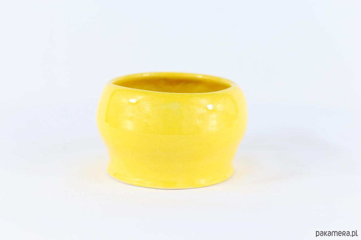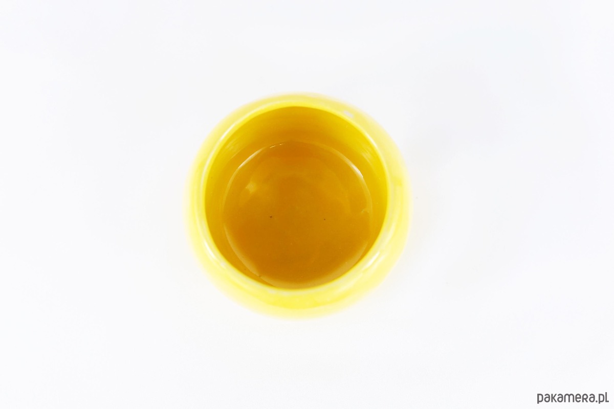 Ta ceramiczna czarka, uchwycona na minimalistycznym białym tle, jest esencją słonecznego blasku – jej intensywna, lśniąca żółcień przyciąga wzrok i niemal emanuje radosną energią. Powierzchnia naczynia jest pokryta grubą, błyszczącą glazurą, która odbija światło z niemal lustrzaną precyzją, nadając mu szklistej gładkości. Kształt jest organiczny i krągły: od szerokiego, otwartego rantu, czarka łagodnie zwęża się ku środkowi, tworząc zmysłowe "taliowanie", by następnie ponownie rozszerzyć się ku podstawie. Ta subtelna, płynna forma sprawia, że przedmiot wydaje się być efektem miękkiego ugniatania w dłoniach, a jego intensywny, ciepły kolor czyni z niego małą, wizualną rzeźbę optymizmu. To nie jest zwykłe naczynie, lecz mała rzeźba w kolorze radości, stworzona, by trzymać w sobie esencję światła. Wygląda, jakby miała w sobie uwięziony kawałek letniego dnia, gotowy, by rozświetlić każdą chwilę. I wypić gorącą herbatę lub kakao dla rozgrzania w chłodne wieczory.