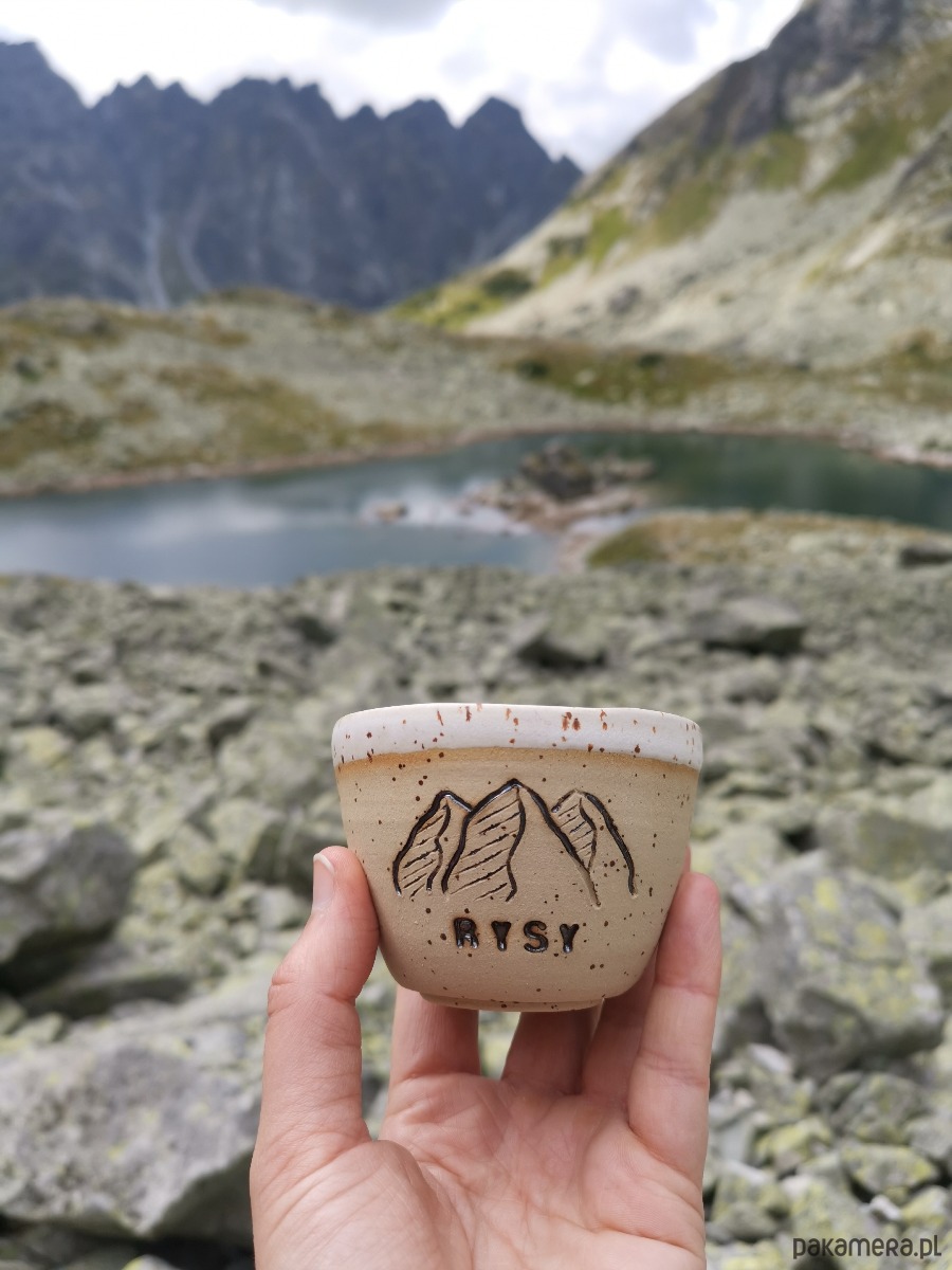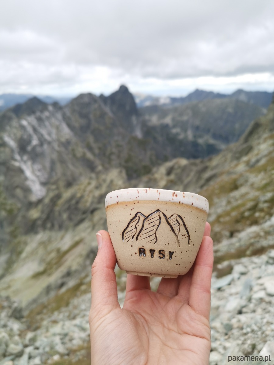 Ta konkretna czarka była na Rysach. Została zabrana na szlak i spojrzała na świat z najwyższego szczytu Polski. To nie jest tylko inspiracja – to prawdziwe górskie doświadczenie, które stało się częścią jej historii.