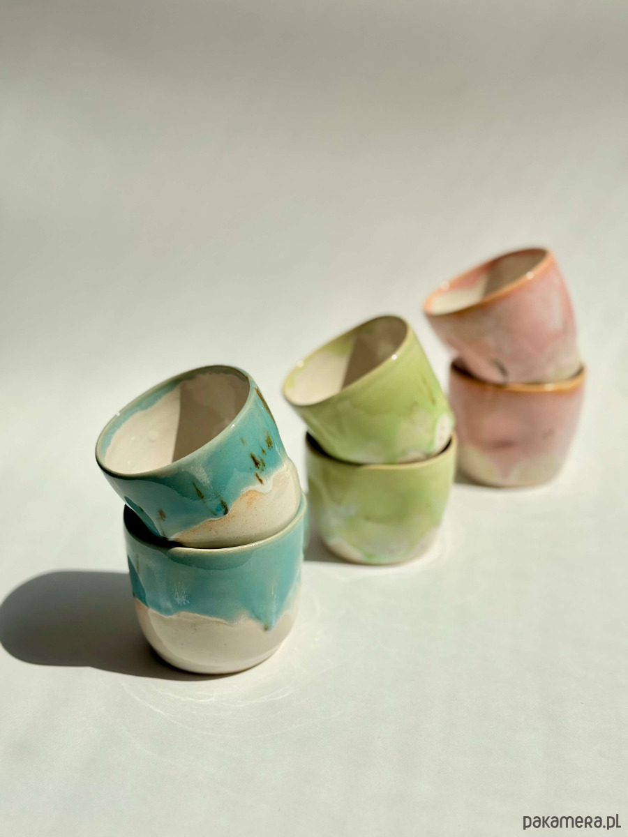 Ta czarka to mały rytuał w pastelowym wydaniu. Ręcznie formowana na kole garncarskim, z subtelnym wgłębieniem na palce – by dobrze leżała w dłoni. Jej nieregularny kształt i delikatny pastelowy kolor przywodzi na myśl wiosenne kwiaty. Wnętrze pozostaje czysto białe – by kawa zawsze wyglądała tak dobrze, jak smakuje.