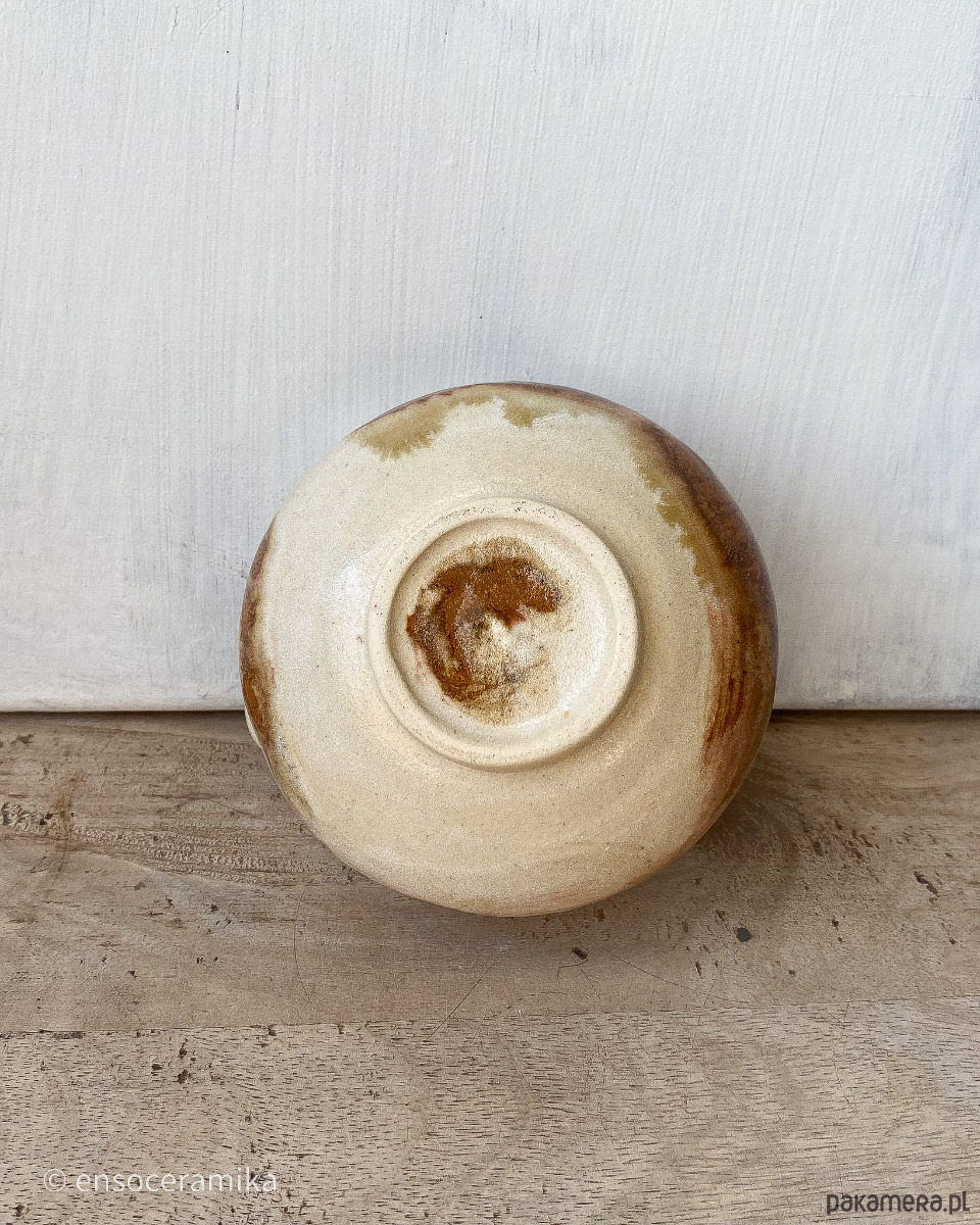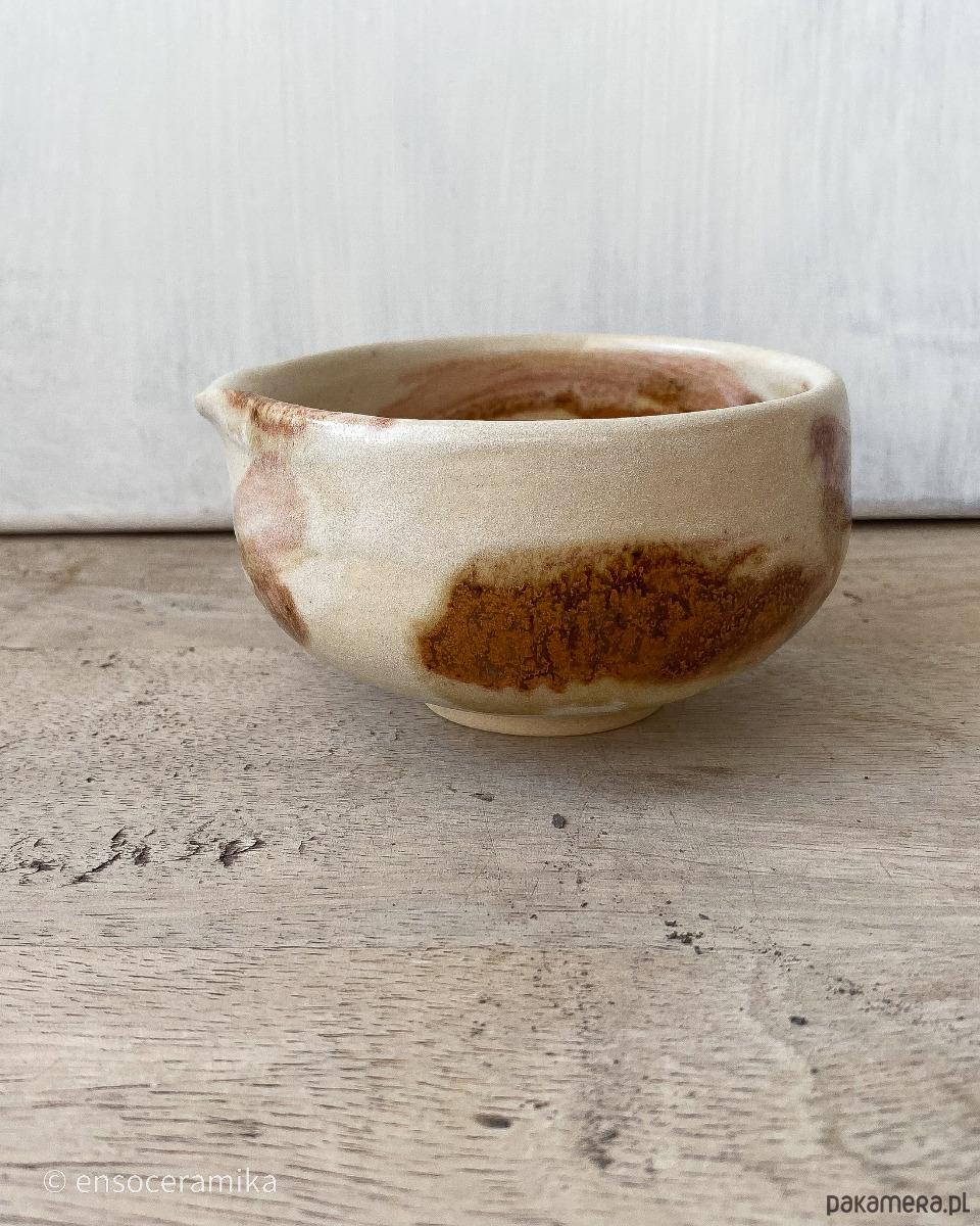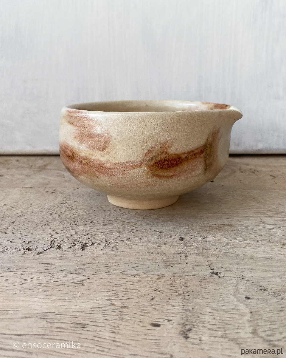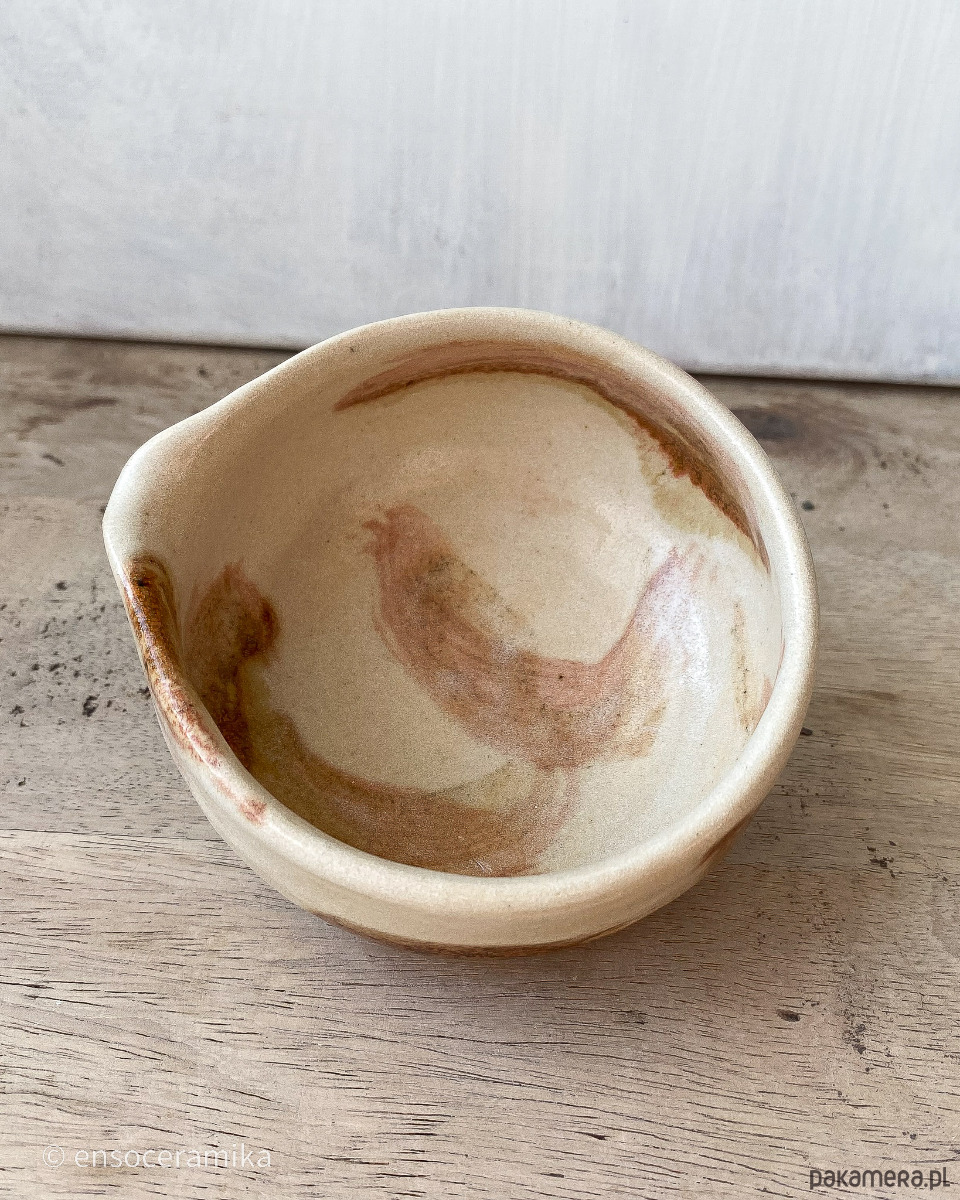 Unikatowa czarka ceramiczna inspirowana japońską kaligrafią, oraz malarstwem tuszowym. Toczona na kole. Kolor beżowy gliny w połączeniu z brązem. Czarka wykończona jest matowym szkliwem. Wypalana w temperaturze 1220°C.