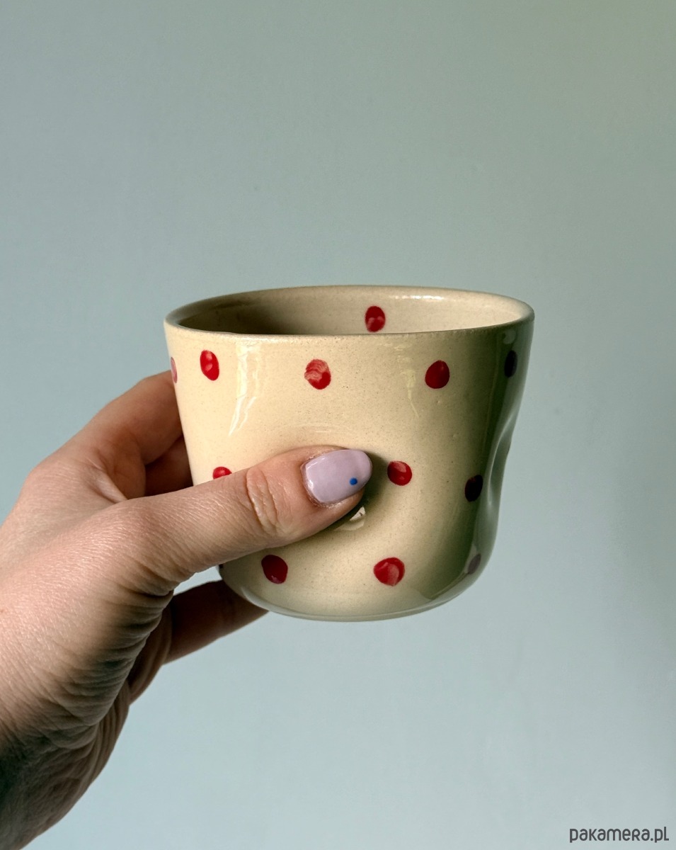 Gniotek to ręcznie robiona czarka, która ma wgłębienia idealnie dopasowujące się do palców, dzięki czemu bardzo wygodnie trzyma się czarkę w dłoni :)
