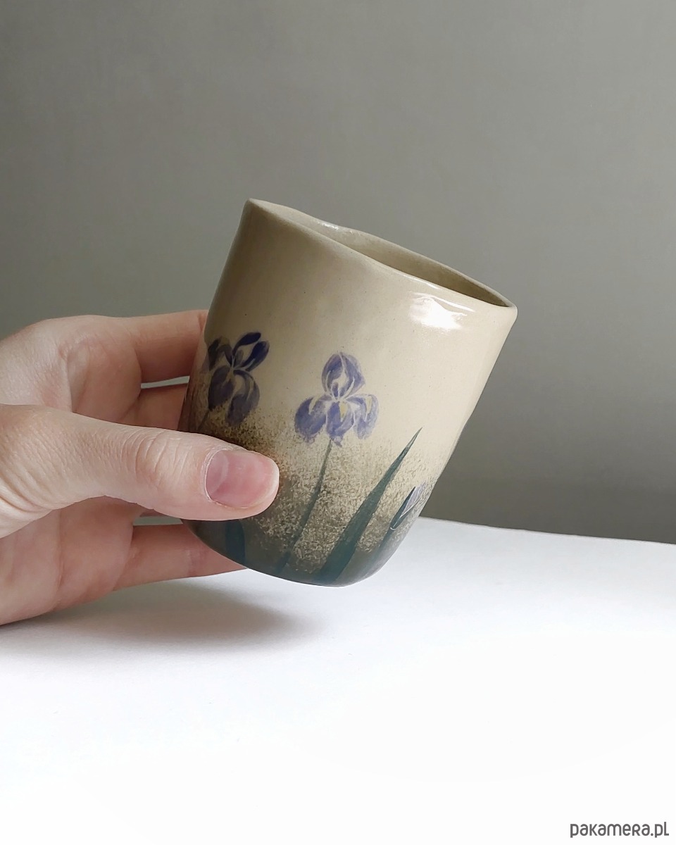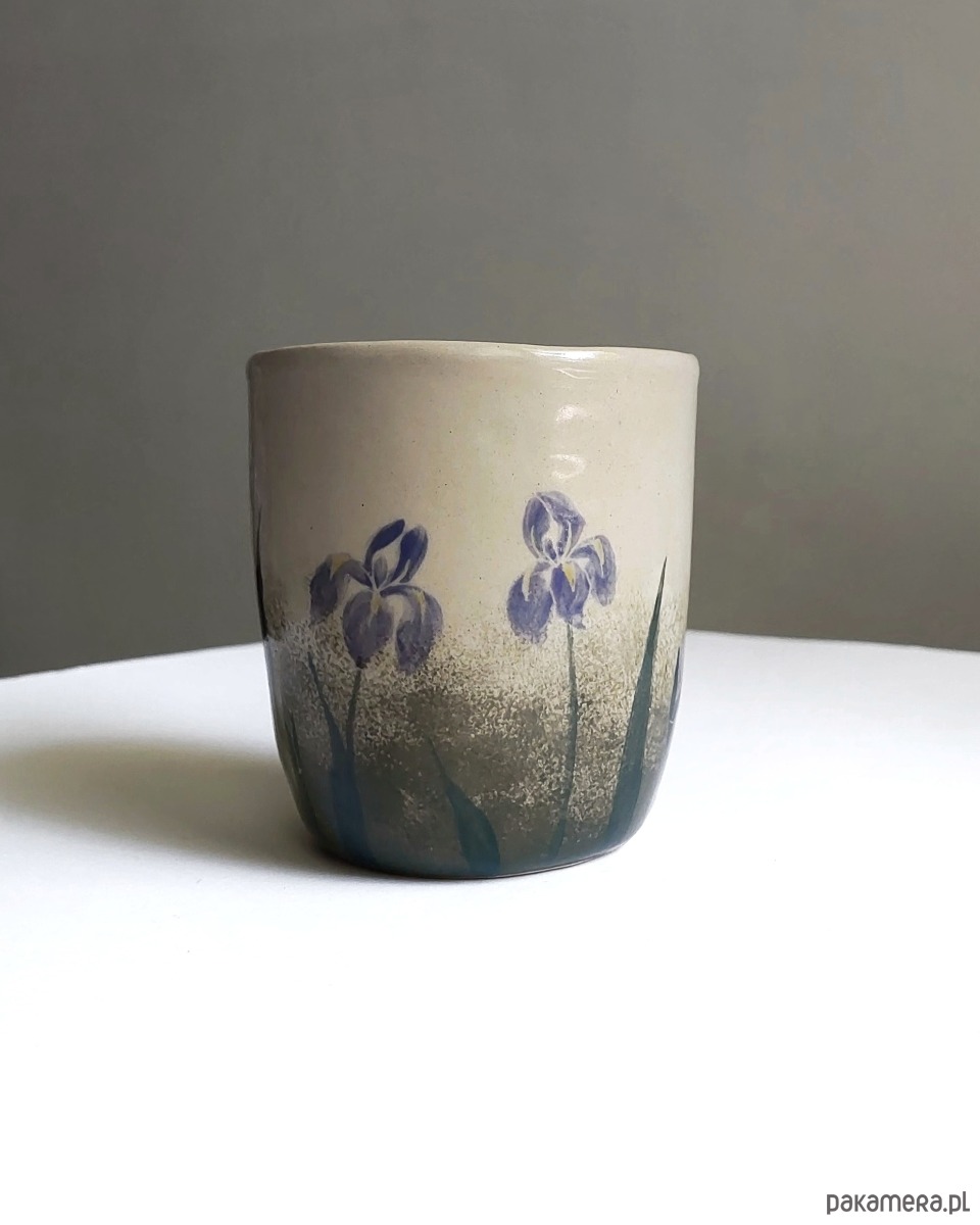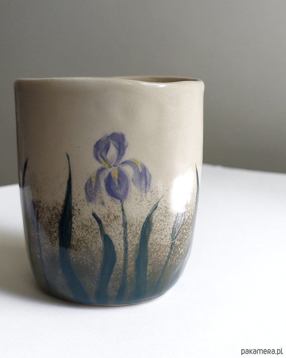 Czarka z ręcznie namalowanymi Irysami w kolorze fioletowym.