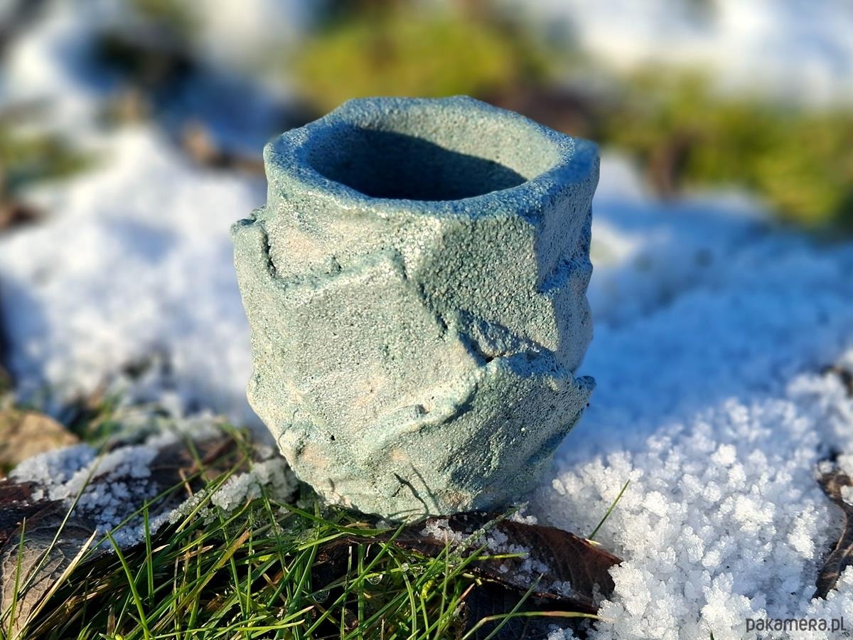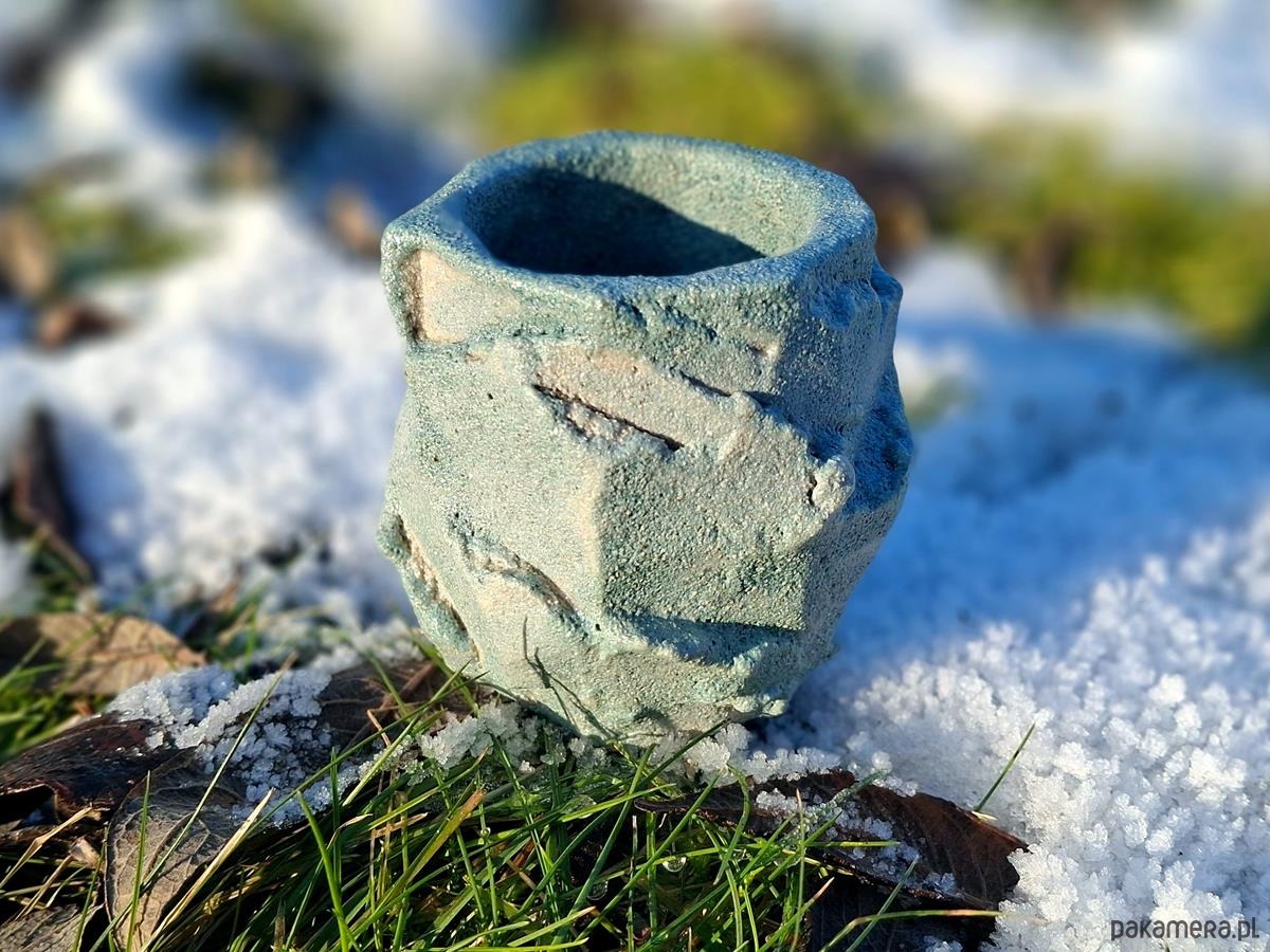 Ta czarka nie powstała z ruchu koła garncarskiego, lecz z potrzeby wydobycia formy z chaosu. Technika kurinuki to proces odważny – polega na drążeniu i ciosaniu litej bryły gliny, dopóki nie ukaże swojej duszy. Czarka Szum przypomina korę prastarego drzewa. Naczynie o niezwykłej dynamice formy. Nieregularne krawędzie i głębokie bruzdy tworzą grę świateł i cieni, która zmienia się wraz z każdym obrotem naczynia w dłoniach. Zewnętrzna, surowa struktura kontrastuje z łagodnym wnętrzem, tworząc przedmiot o dużej sile wyrazu. Idealna do herbaty matcha, kakao lub grzańca lub jako obiekt dekoracyjny dla kolekcjonerów ceramiki poszukujących przedmiotów "z duszą" i wyraźnym śladem ręki artysty.