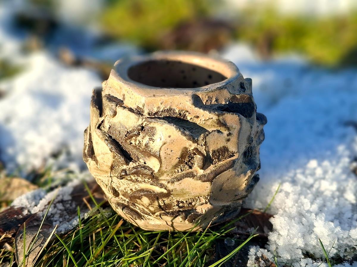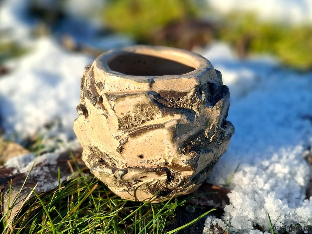 Oto unikatowa czarka wykonana w technice Kurinuki, polegającej na rzeźbiarskim formowaniu naczynia z jednego kawałka gliny. Dzięki temu każda linia i każde wgłębienie są niepowtarzalne. Surowy, naturalny design z wyraźną grą światłocienia na powierzchni. To naczynie dla kogoś, kto w codziennym rytuale picia herbaty szuka autentycznego kontaktu z naturą. Idealna do celebracji codzienności. W nurcie Wabi-cha wierzymy, że to, co nieregularne i prawdziwe, najlepiej koi duszę. Czarka jest idealna dla kolekcjonerów rzemiosła artystycznego, którzy cenią sobie przedmioty "z duszą" i śladem narzędzia. Idealna do matchy, kakao lub jako obiekt dekoracyjny przyciągający wzrok. Każde naczynie jest symbolem odzyskiwania kontroli nad chaosem.