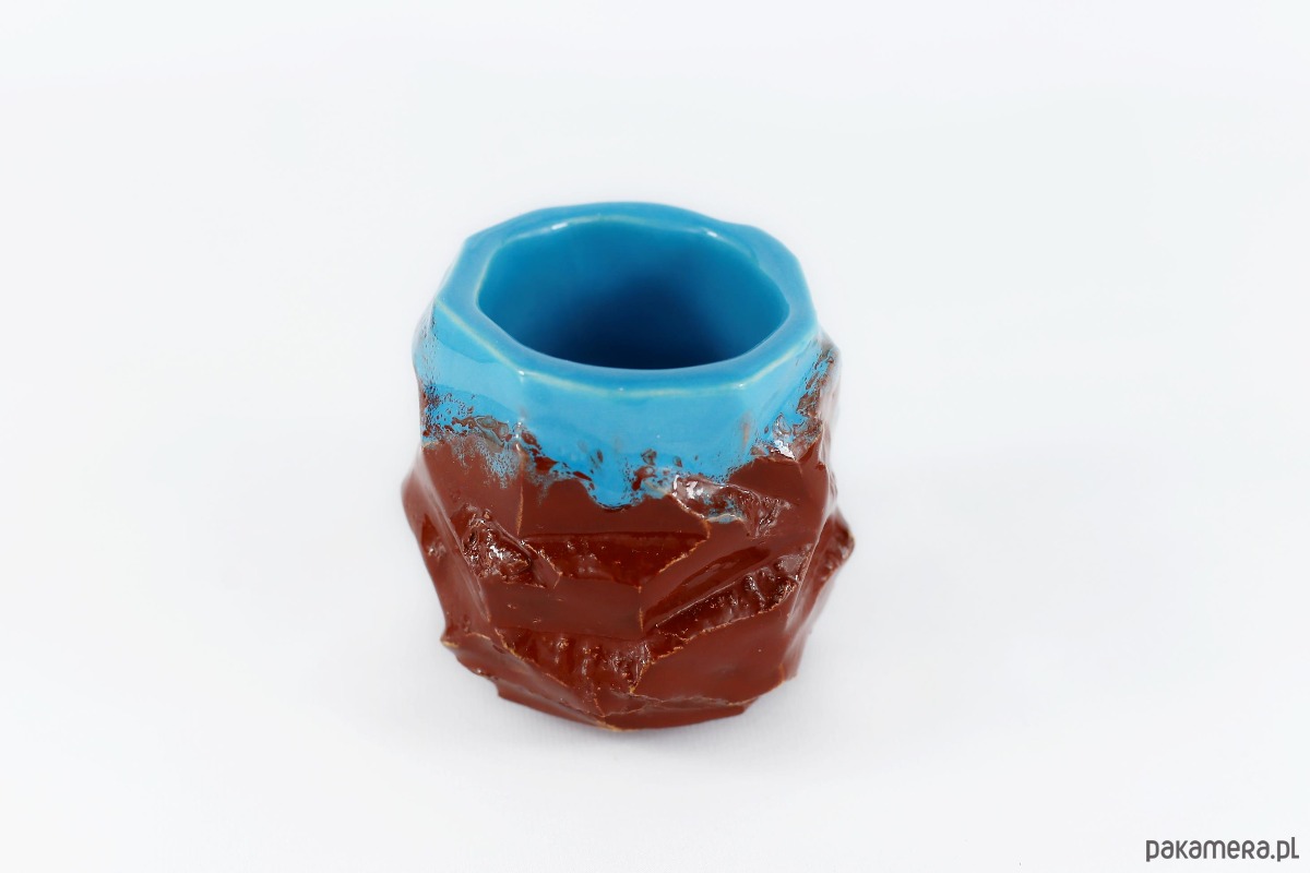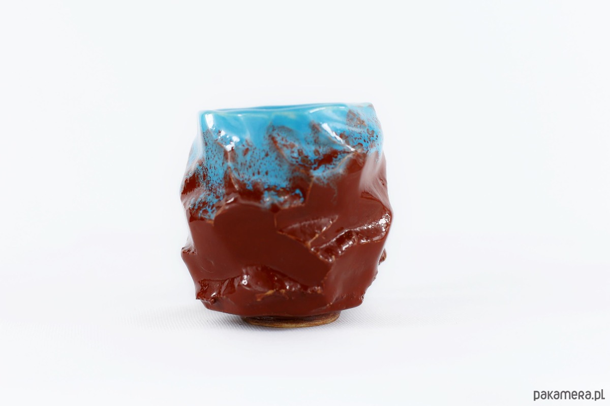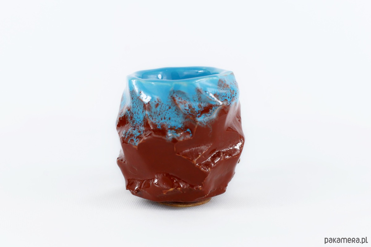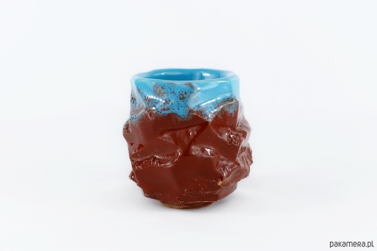 Ta czarka jest nie tylko naczyniem, lecz opowieścią wykutą w glinie i ogniu. Uosabia japońską estetykę Wabi-Sabi – piękno tkwiące w niedoskonałości, przemijaniu i surowej autentyczności. Jej nieregularny, rzeźbiony kształt, pełen ostrych załamań i zagnieceń, przywodzi na myśl fragment naturalnej, wulkanicznej skały wyrwanej z ziemi. W dotyku czarka opowiada o kontraście: gładkie, lśniące tafle szkliwa przeplatają się z chropowatymi, matowymi teksturami gliny. Jest to przedmiot z charakterem, który wymaga uwagi i zaprasza do medytacyjnej kontemplacji, przypominając, że prawdziwe piękno często kryje się w tym, co nieukończone i zmienne.