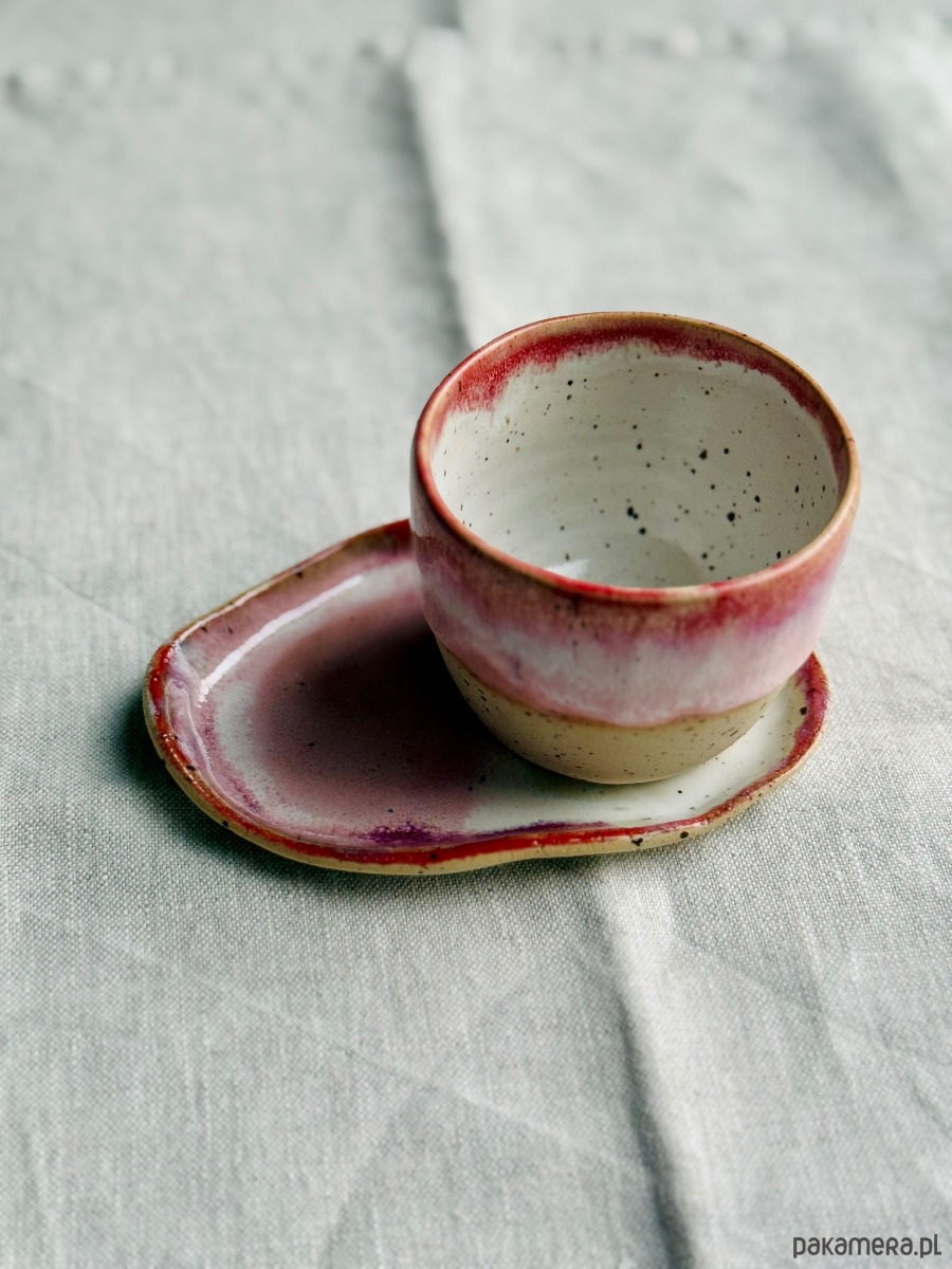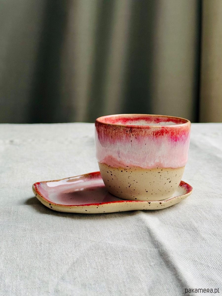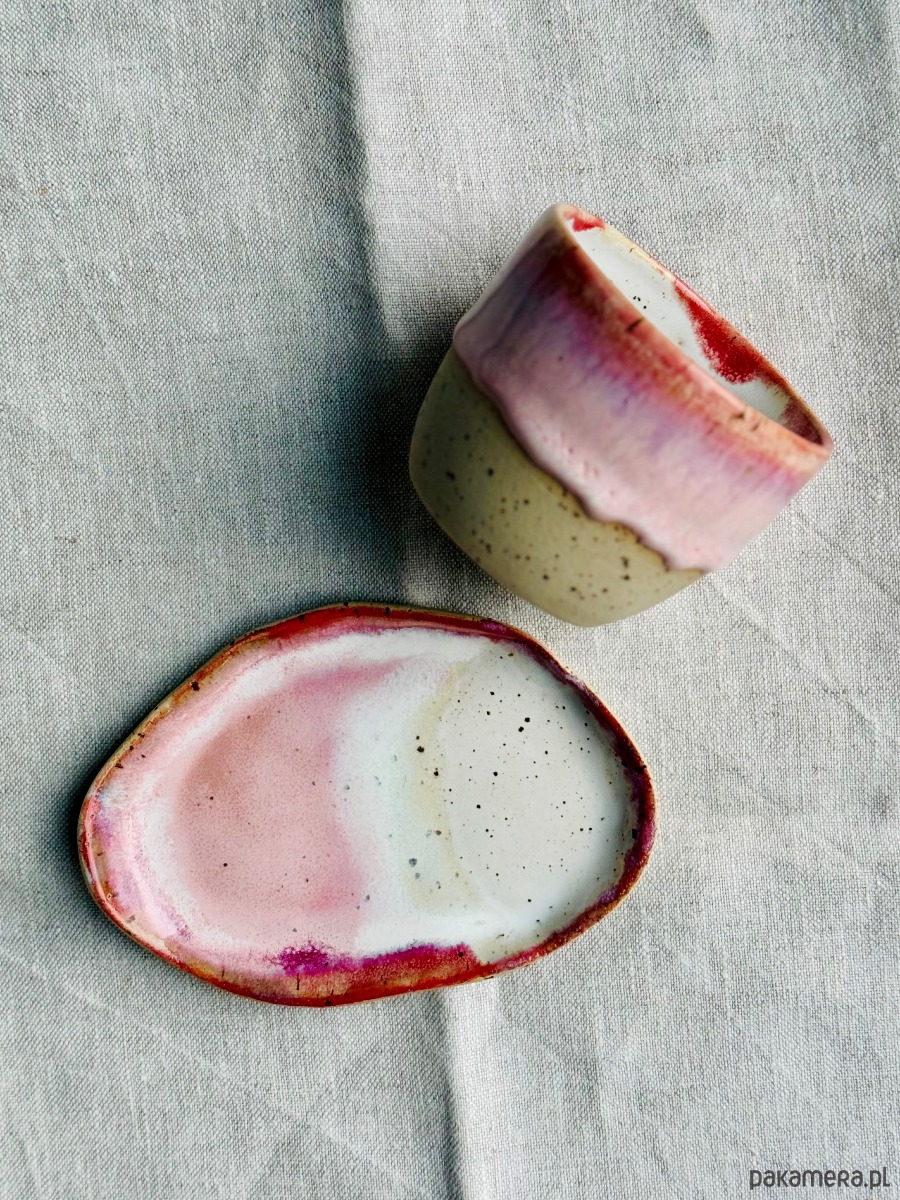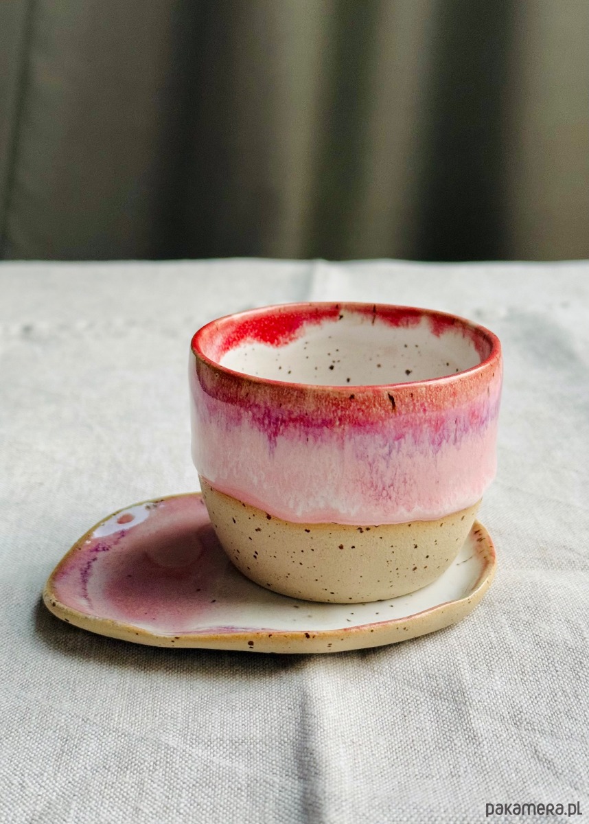 Na zewnątrz szkliwo w kolorze czerwono-różowy melanż.
