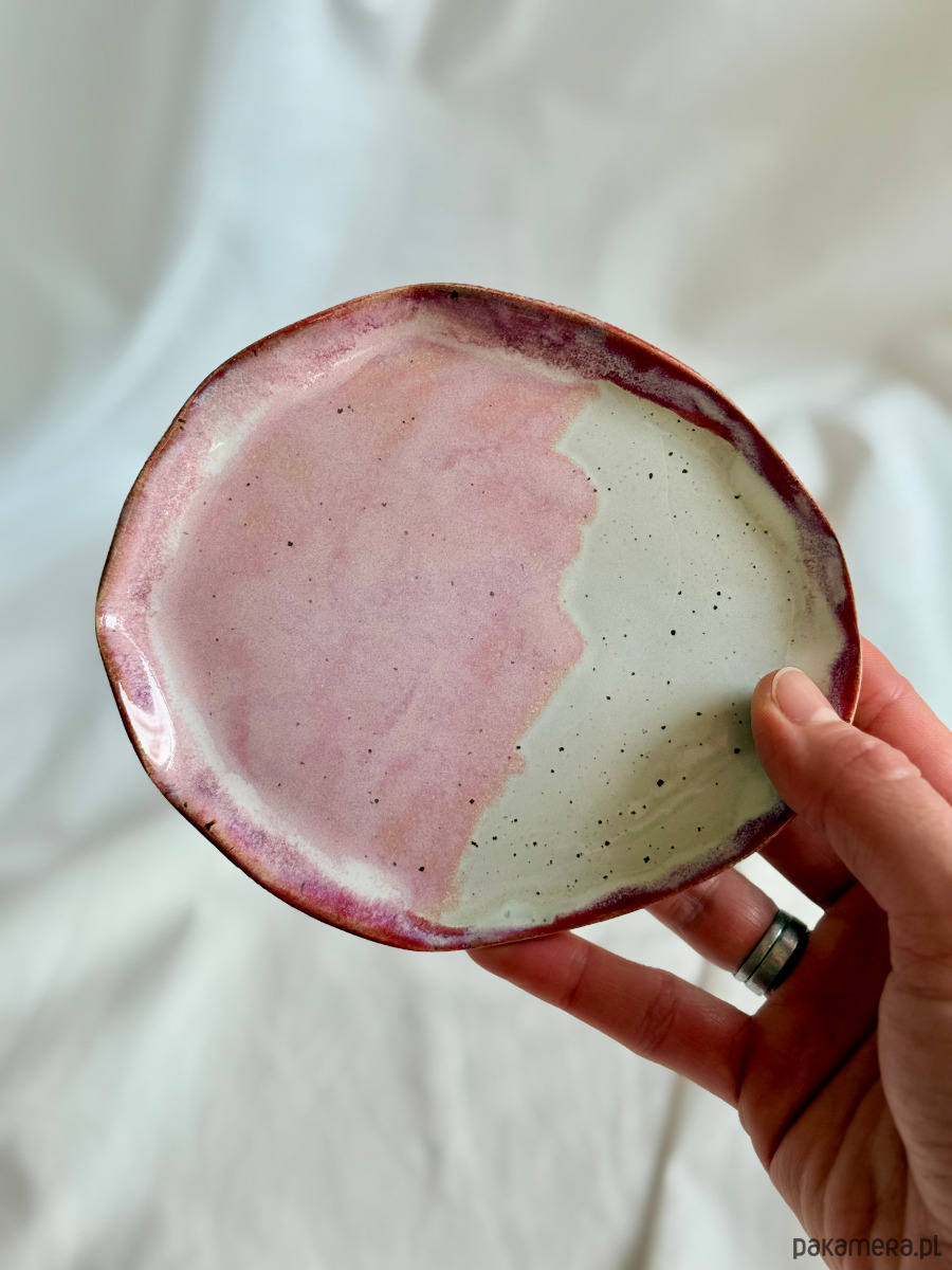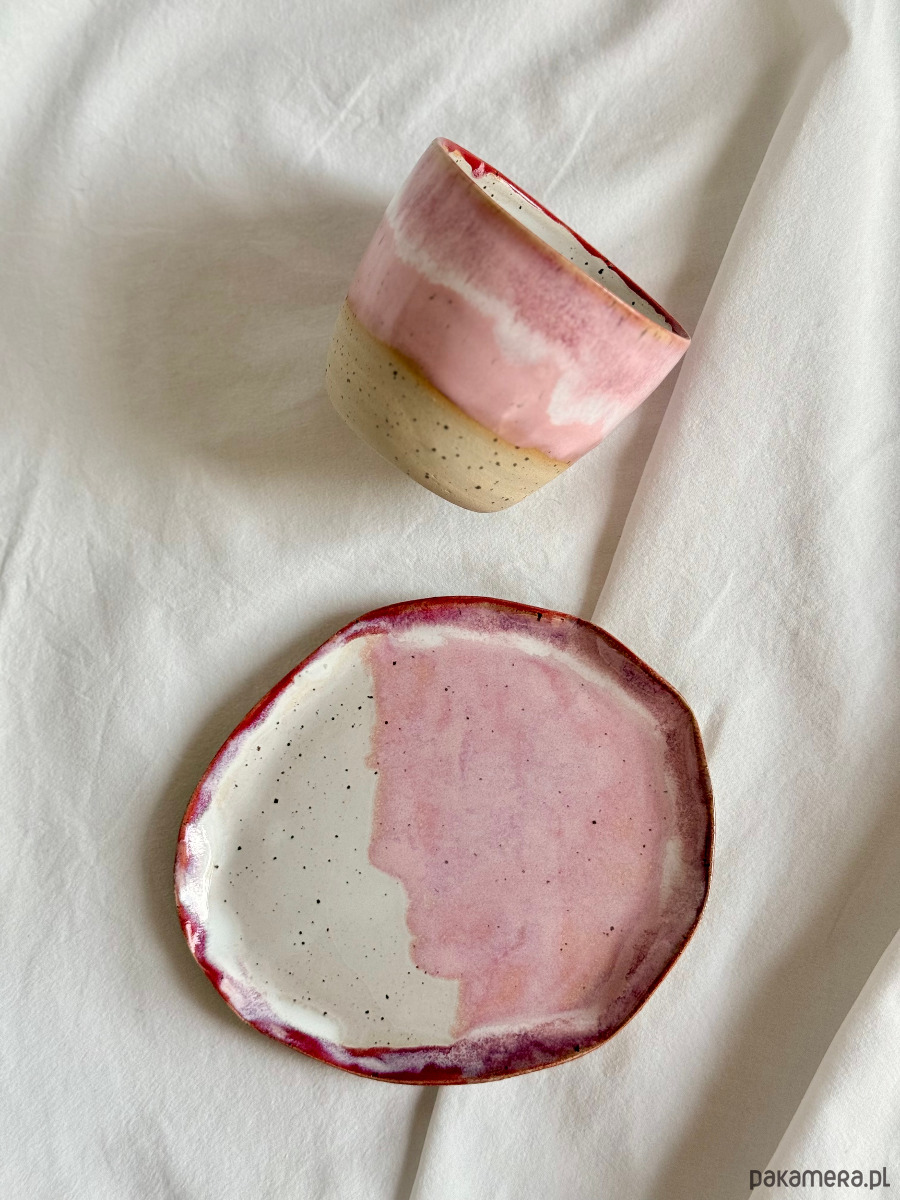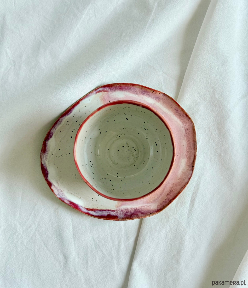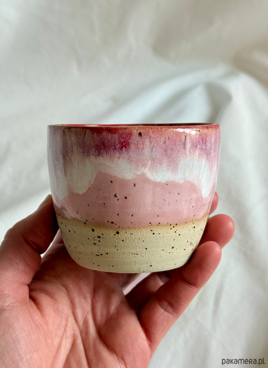 Na zewnątrz szkliwo w kolorze czerwono-różowy melanż.