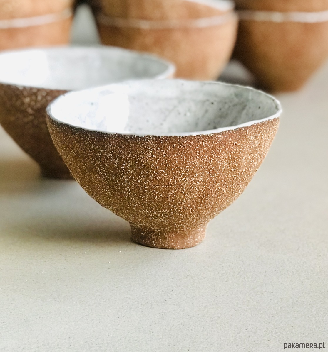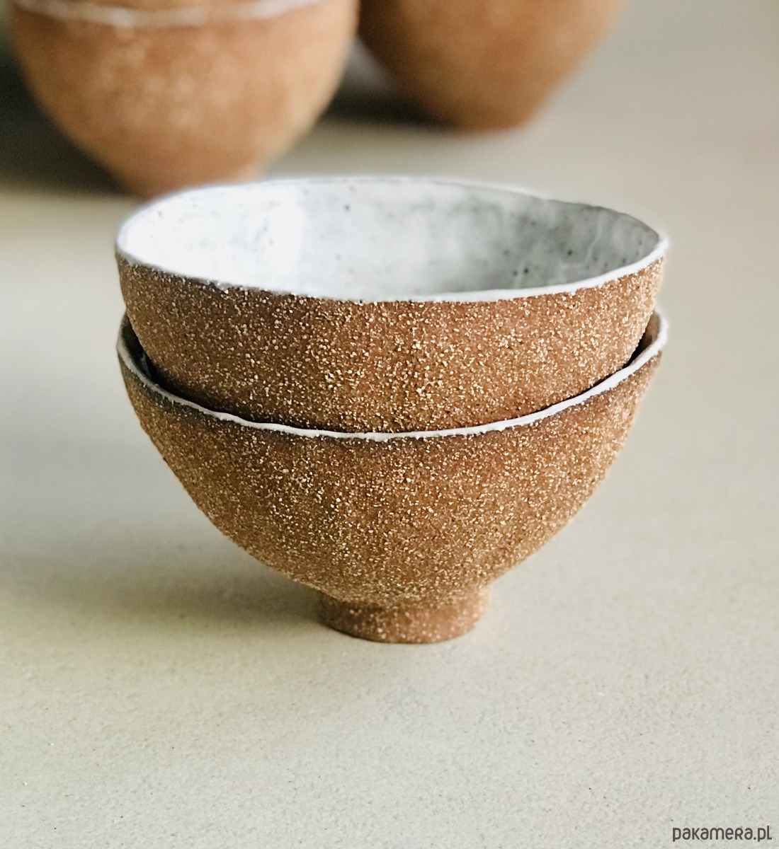 Ceramika została wykonana ręcznie w krakowskiej pracowni ceramicznej CESELE. Atrybutem każdego naczynia jest jego niepowtarzalny charakter. Funkcjonalna ceramika użytkowa wzbogaca domową przestrzeń i nadaje codziennym czynnością wyjątkową oprawę. Czarka/ miseczka została wykonana z czerwonej, szamotowej gliny a jej wnętrze pokryte białym, nakrapianym szkliwem. Uwydatniona faktura gliny nadaje ceramice oryginalny, rustykalny charakter.