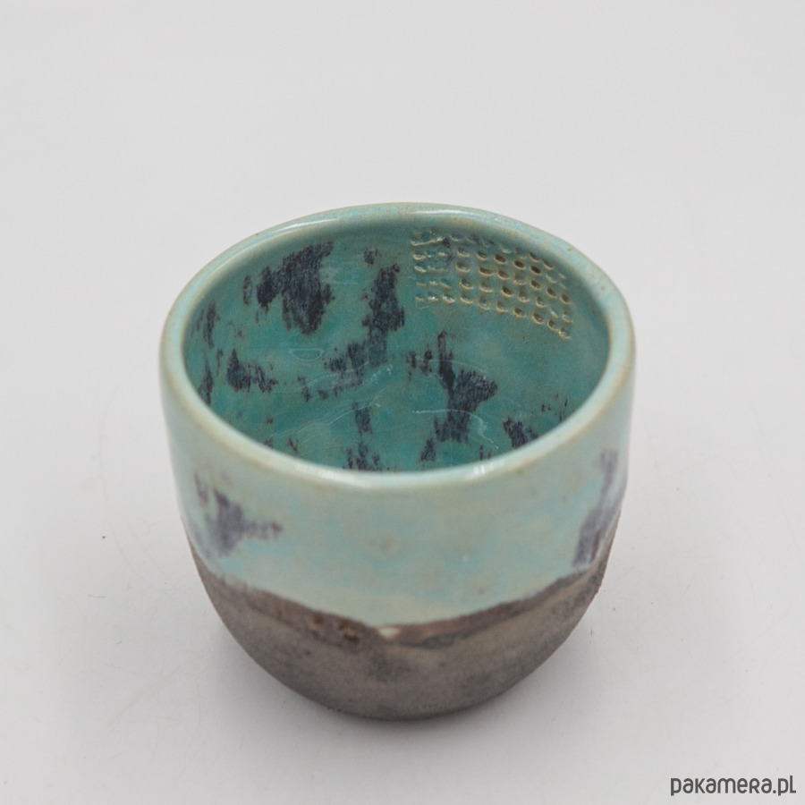 Czarka toczona na kole garncarskim, w środku tarka na kurkumę i imbir (trze się o ściankę czarki i wszystko wpada do środka).