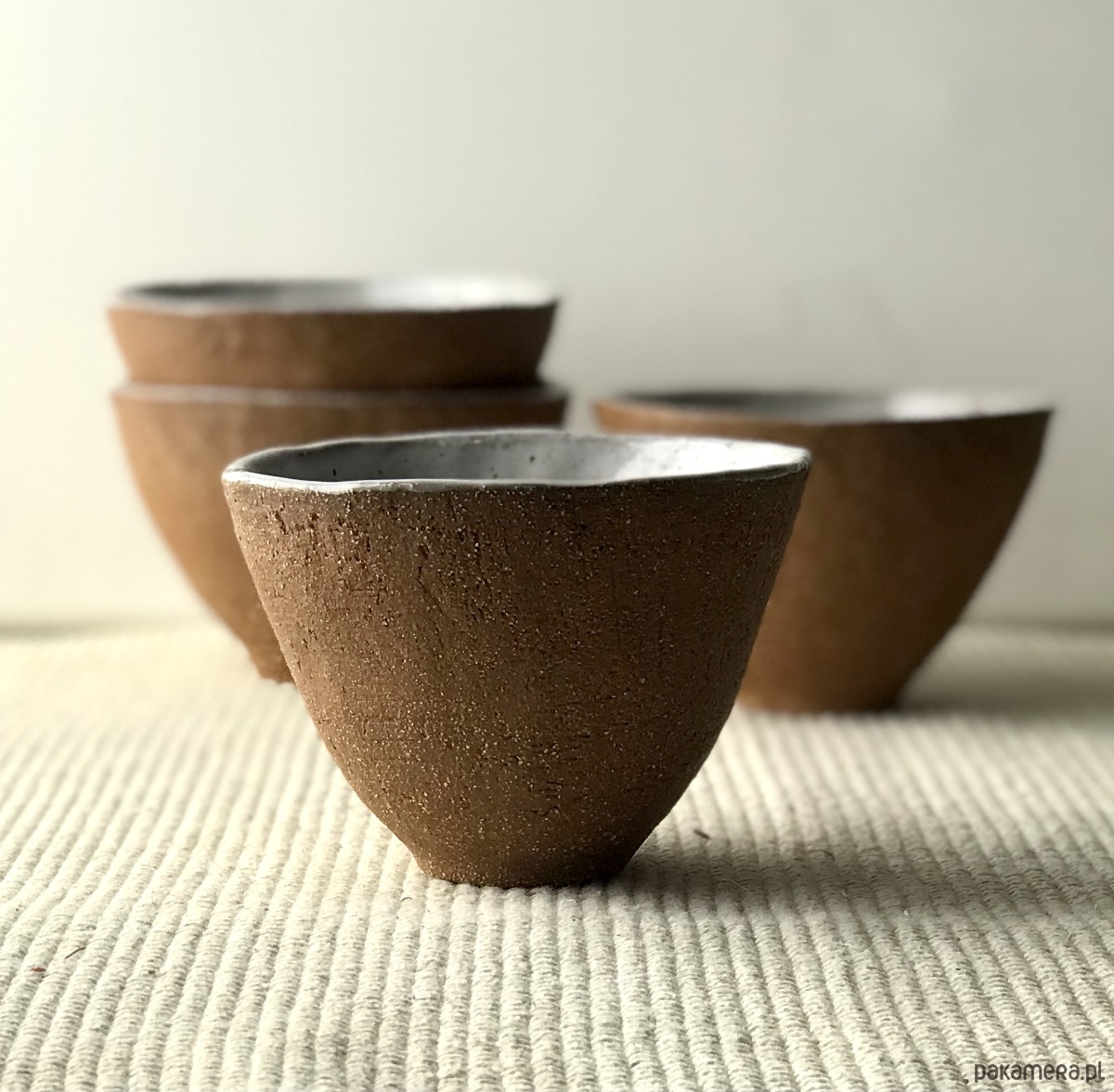 Ceramika została wykonana ręcznie w krakowskiej pracowni ceramicznej CESELE. Atrybutem każdego naczynia jest jego niepowtarzalny charakter. Funkcjonalna ceramika użytkowa wzbogaca domową przestrzeń i nadaje codziennym czynnością wyjątkową oprawę. Czarka została wykonana z czerwonej, szamotowej gliny a jej wnętrze pokryte białym, nakrapianym szkliwem. Uwydatniona faktura gliny nadaje ceramice oryginalny, rustykalny charakter.