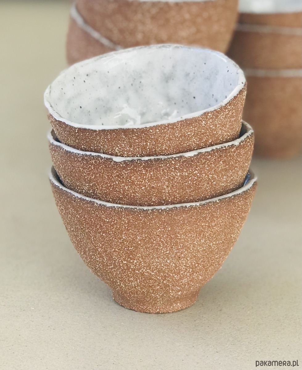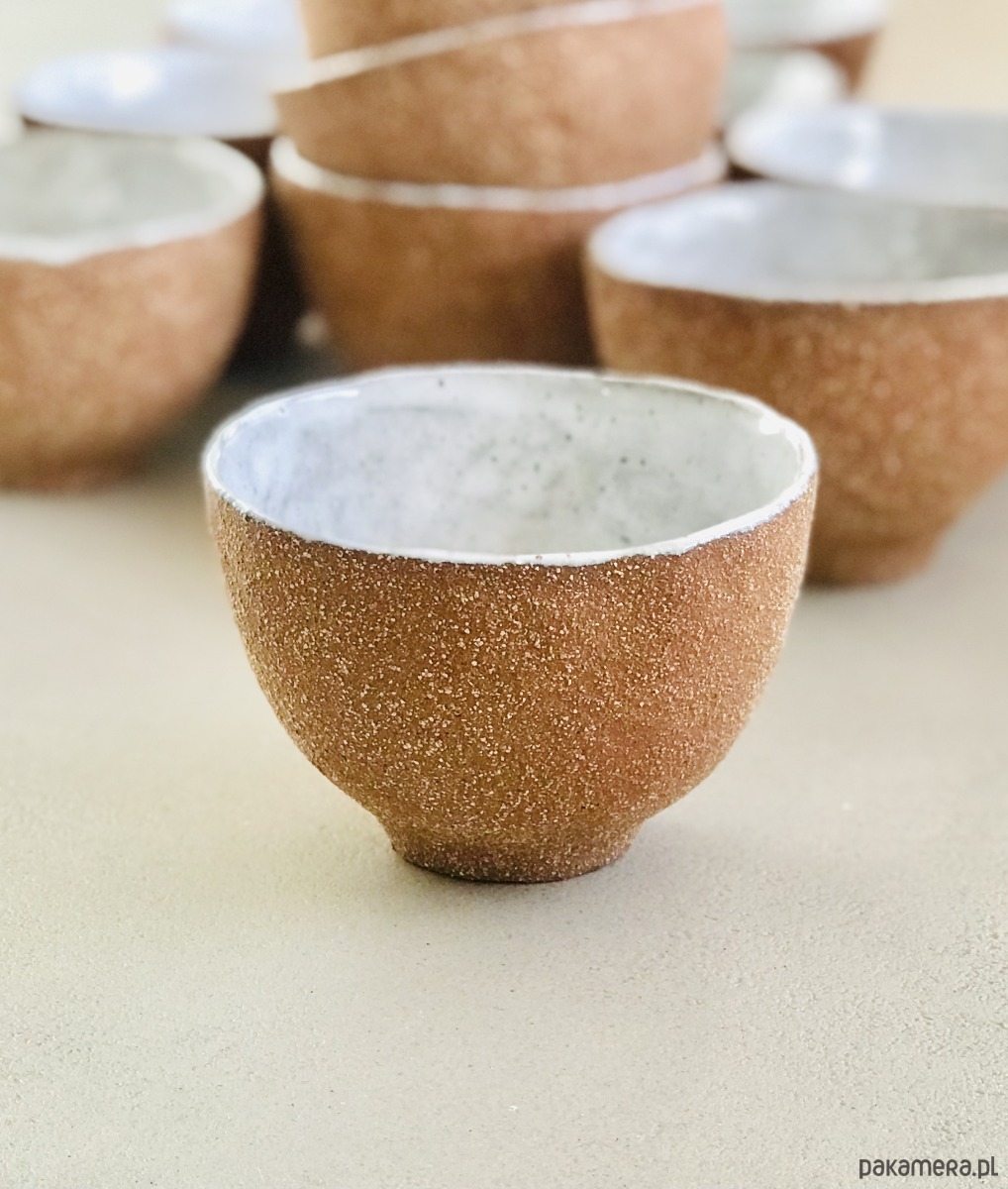 Ceramika została wykonana ręcznie w krakowskiej pracowni ceramicznej CESELE. Atrybutem każdego naczynia jest jego niepowtarzalny charakter. Funkcjonalna ceramika użytkowa wzbogaca domową przestrzeń i nadaje codziennym czynnością wyjątkową oprawę. Czarka została wykonana z czerwonej, szamotowej gliny a jej wnętrze pokryte białym, nakrapianym szkliwem. Uwydatniona faktura gliny nadaje ceramice oryginalny, rustykalny charakter.