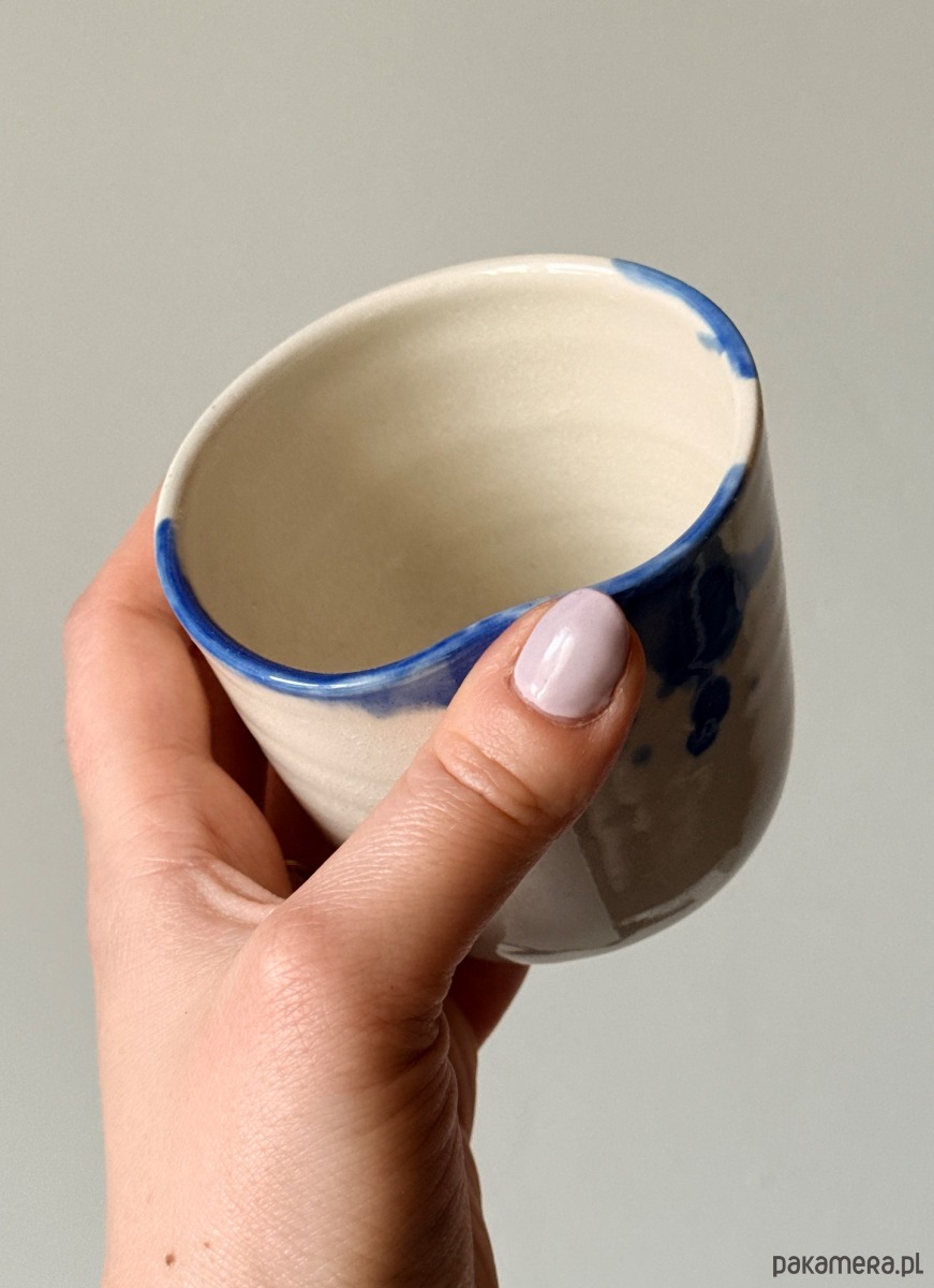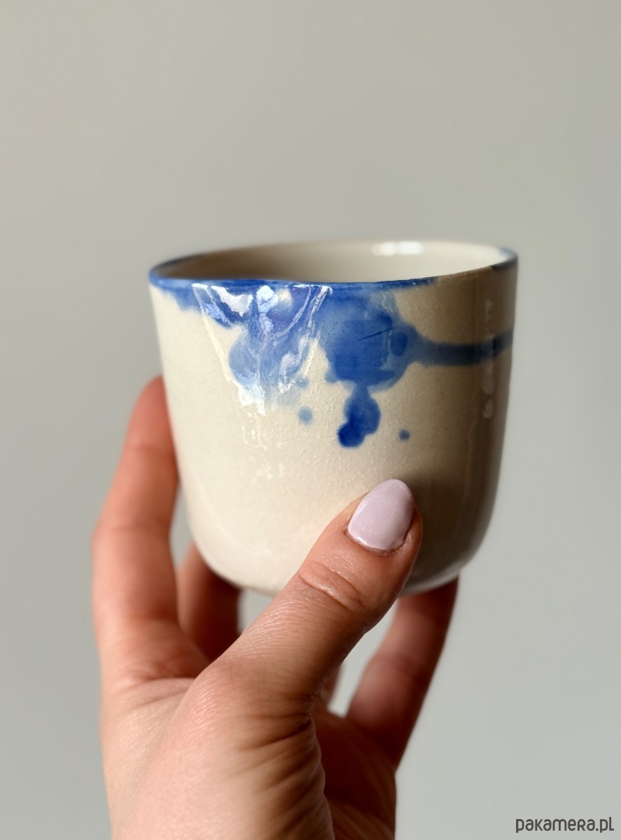 Ręcznie robiona i malowana czarka z akwarelowym akcentem w kolorze niebieskim.