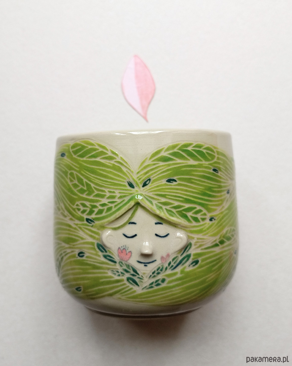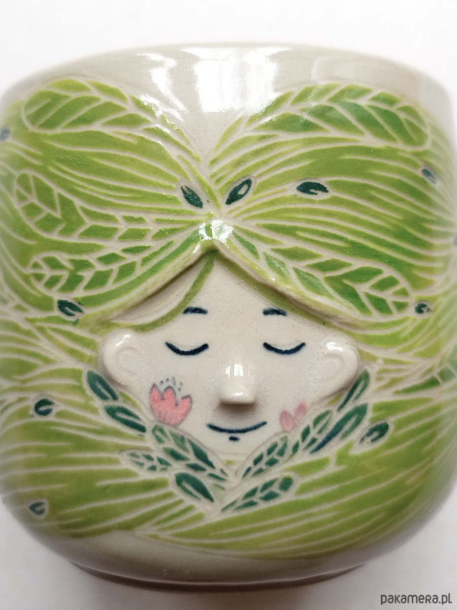 Kubek przestawia panienkę wśród falujących liści i traw. Trochę jej włosy, a trochę łąka. Jeśli czujesz jedność z naturą - to czarka dla Ciebie!