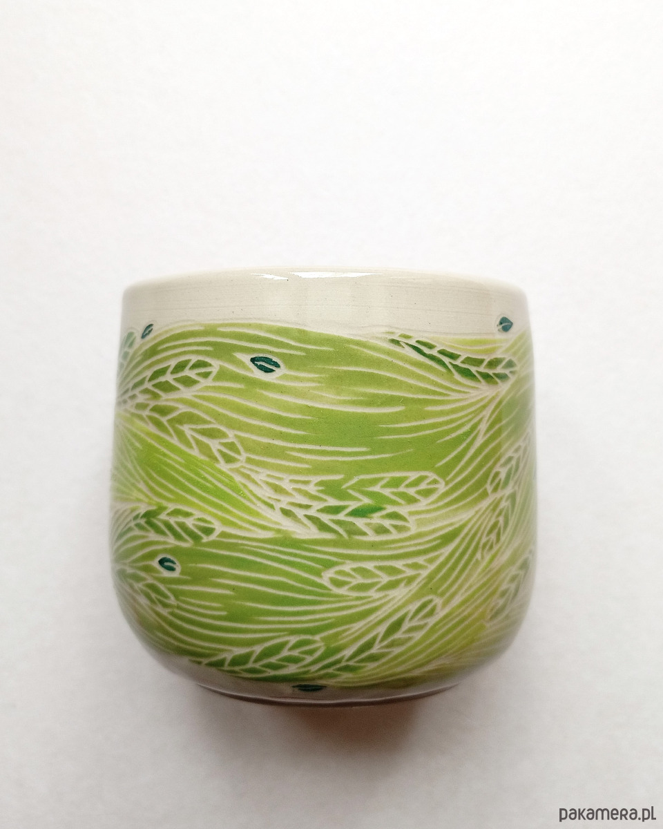 Kubek wykonany w technice sgraffito - wzór jest ręcznie wyryty na kubku, przez co jest niepowtarzalny!