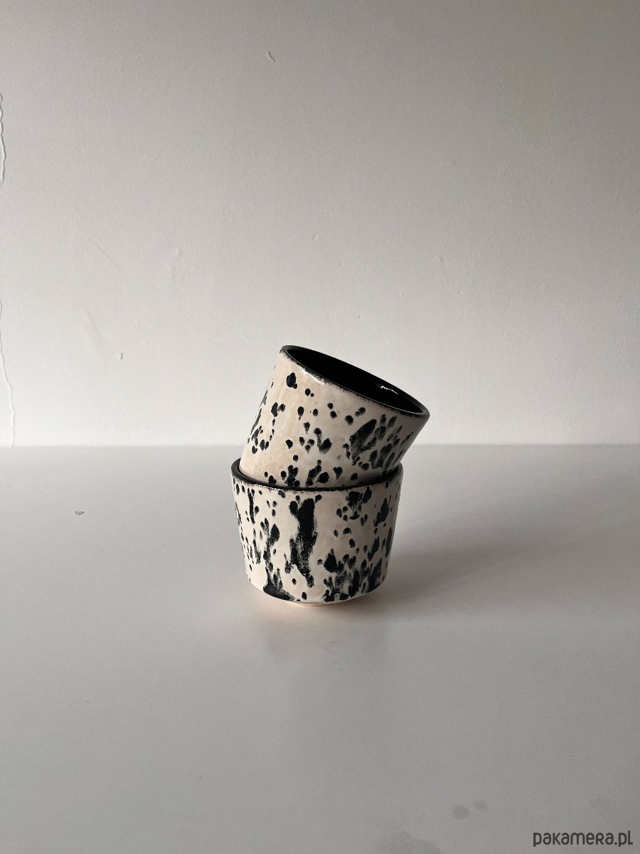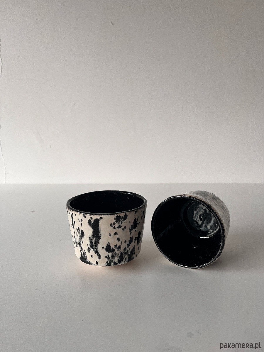 Minimalistyczna, ale wyrazista. Wnętrze czarki pokryte jest głęboką, lśniącą czernią, która pięknie kontrastuje z jasnymi, nakrapianymi ściankami. To połączenie sprawia, że naczynie idealnie odnajdzie się zarówno w codziennych rytuałach, jak i w bardziej wyjątkowych momentach - do porannej kawki, herbaty czy nawet małych deserów.