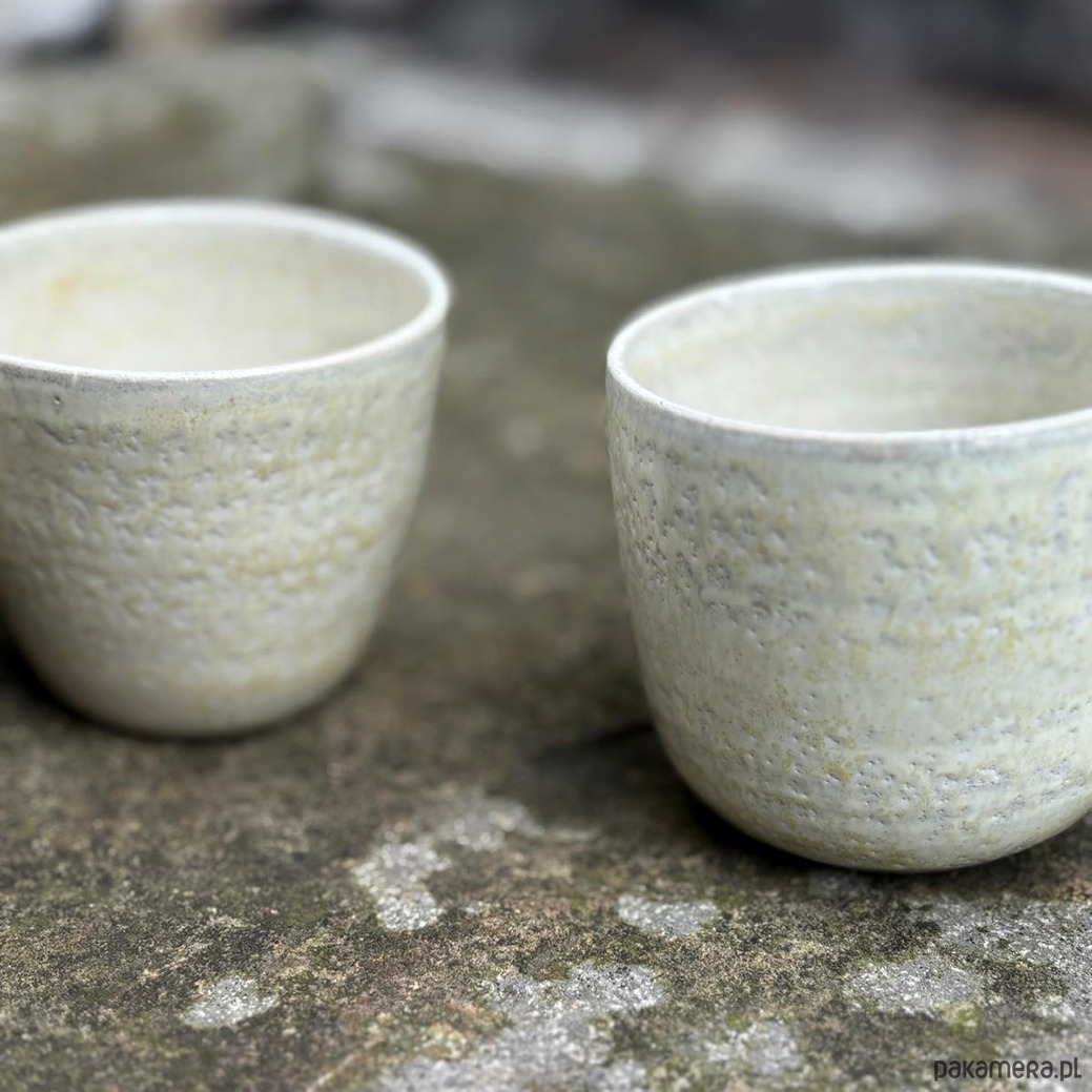 Czarki lepione i szkliwione ręcznie. Nieznacznie różnią się kształtem i wielkością.
