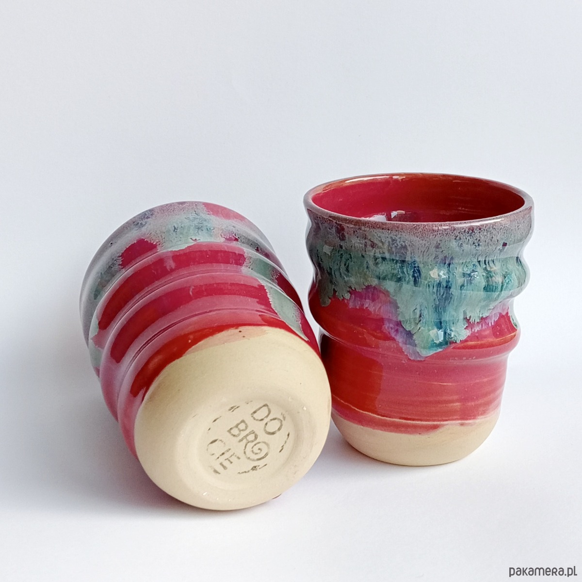 Czarki mają pojemność ok. 300 ml, są wygodne do trzymania, oznaczone na dnie logo Dobrocie, wykonane od podstaw ręcznie, na kole garncarskim.