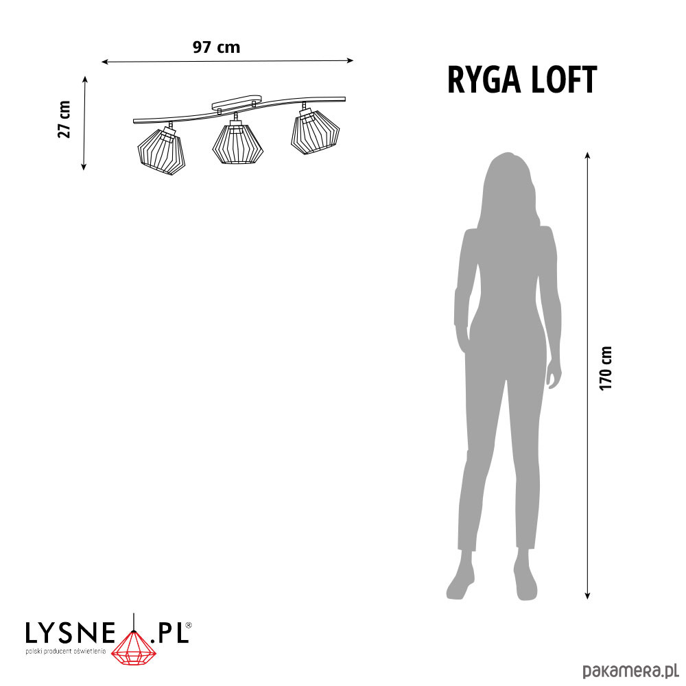 Wymiary lampy: wysokość - 27 cm, szerokość - 97 cm