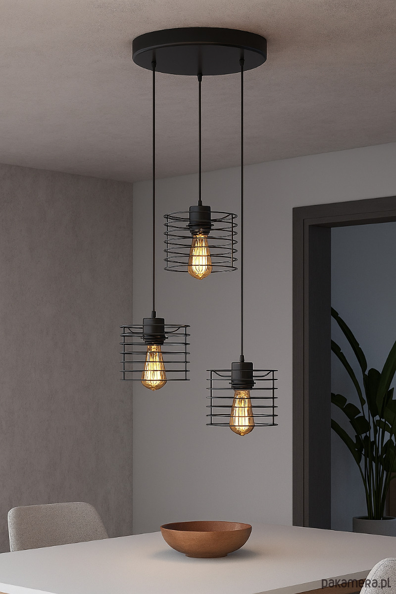 MIJAS LOFT to trzypunktowy żyrandol industrialny, który zapewnia skuteczne i stylowe oświetlenie dużych, loftowych wnętrz. Regulowana wysokość przewodów pozwala idealnie dopasować lampę nad stół, wyspę kuchenną lub do salonu, zwiększając jej funkcjonalność. Trzy punkty światła na popularny gwint E27 gwarantują mocne, równomierne oświetlenie i swobodę wyboru żarówek – od dekoracyjnych Edisonów po energooszczędne LED-y. Minimalistyczne, metalowe klosze w czerni lub bieli świetnie wpisują się w nowoczesne i industrialne aranżacje. Produkt został wykonany w Polsce z wysokiej jakości materiałów, posiada certyfikat CE i objęty jest 24-miesięczną gwarancją, co daje pewność bezpiecznego i trwałego zakupu.