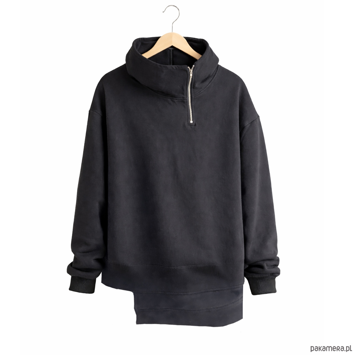 To model, w którym prosta czerń spotyka się z formą trochę bardziej graficzną i mniej oczywistą. Jeśli lubisz luźniejsze fasony, grubsze dzianiny i ubrania, które nie są "zwyczajne", ta bluza zdecydowanie zwraca uwagę.