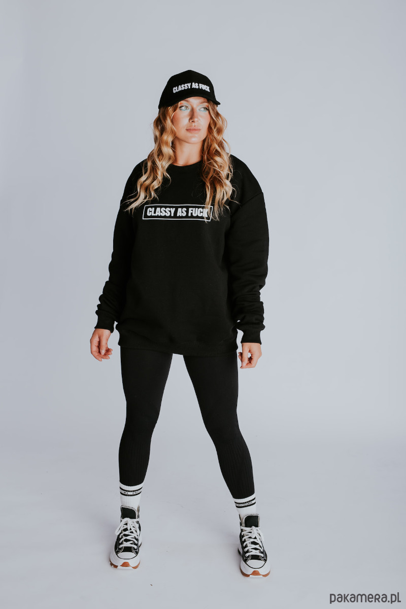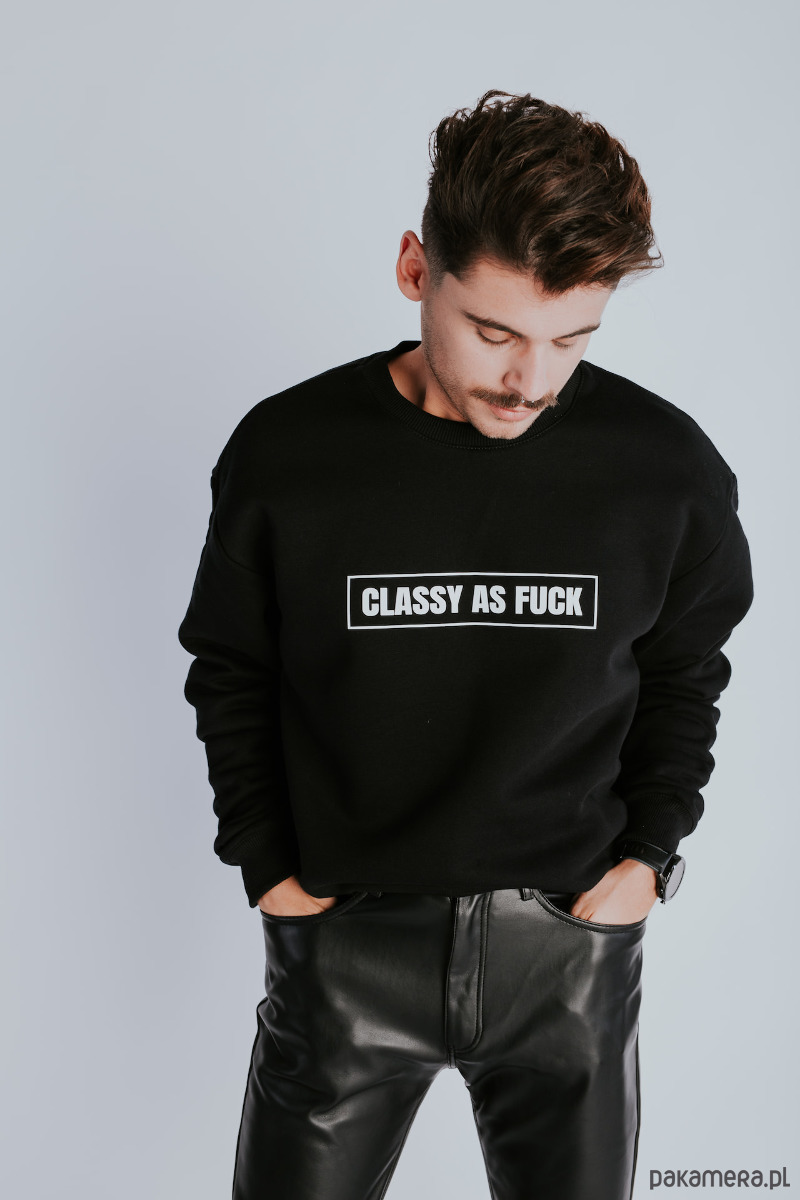 Klasyczny streetwear w kolorze czarnym, który podkreśli Twój wyjątkowy styl jednocześnie pozwoli zachować wygodę oraz komfort użytkowania. Oversizowy a jednocześnie delikatny i subtelny design tego modelu pozwoli Ci na stworzenie wyjątkowej stylizacji, dzięki której wyróżnisz się, bawiąc się formą bez ograniczeń. Nasza bluza to połączenie starannie dobranych materiałów zapewniających uczucie komfortu w każdym aspekcie użytkowania z minimalistycznym nadrukiem CLASSY AS FUCK znajdującym się w górnej części bluzy oraz delikatnym haftem na karku, dzięki czemu zwrócisz na siebie uwagę bez względu na aktualną porę roku.