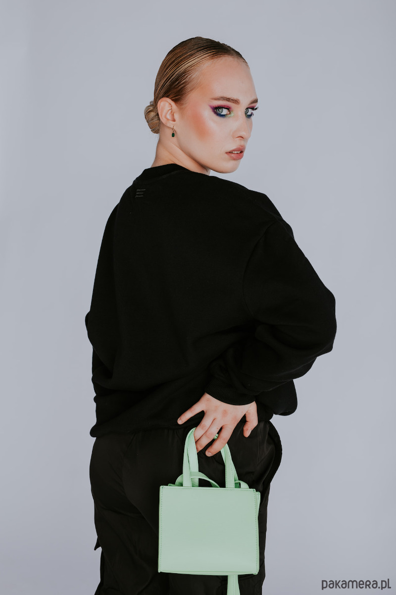 Modelka/Model maja 170cm wzrostu, rozmiar bluzy Oversize.