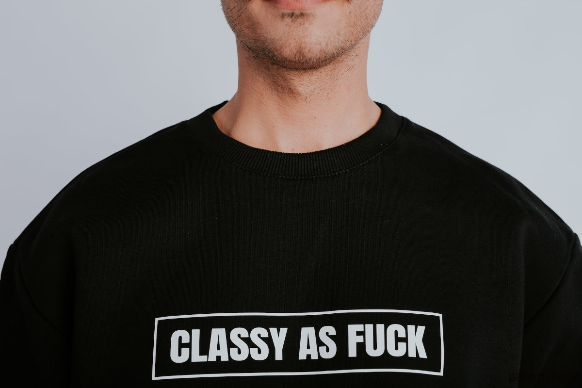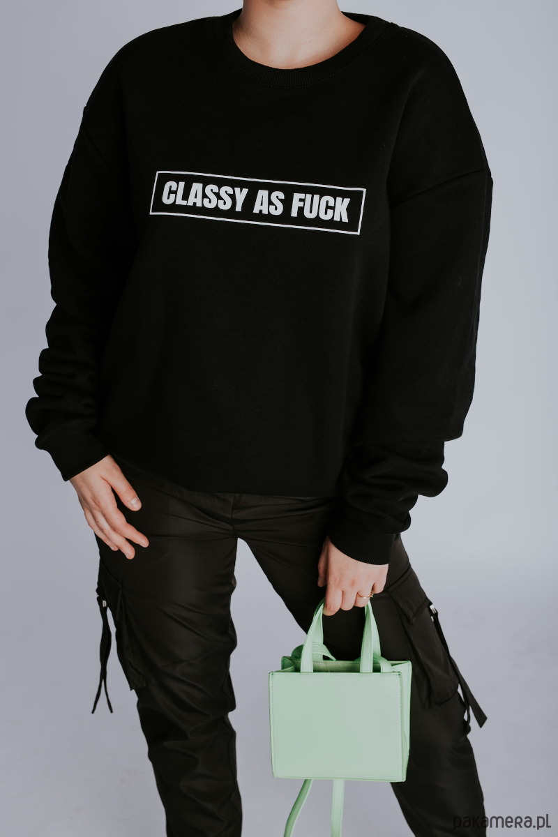 Czarna bluza z białym napisem CLASSY AS FUCK bez kaptura
