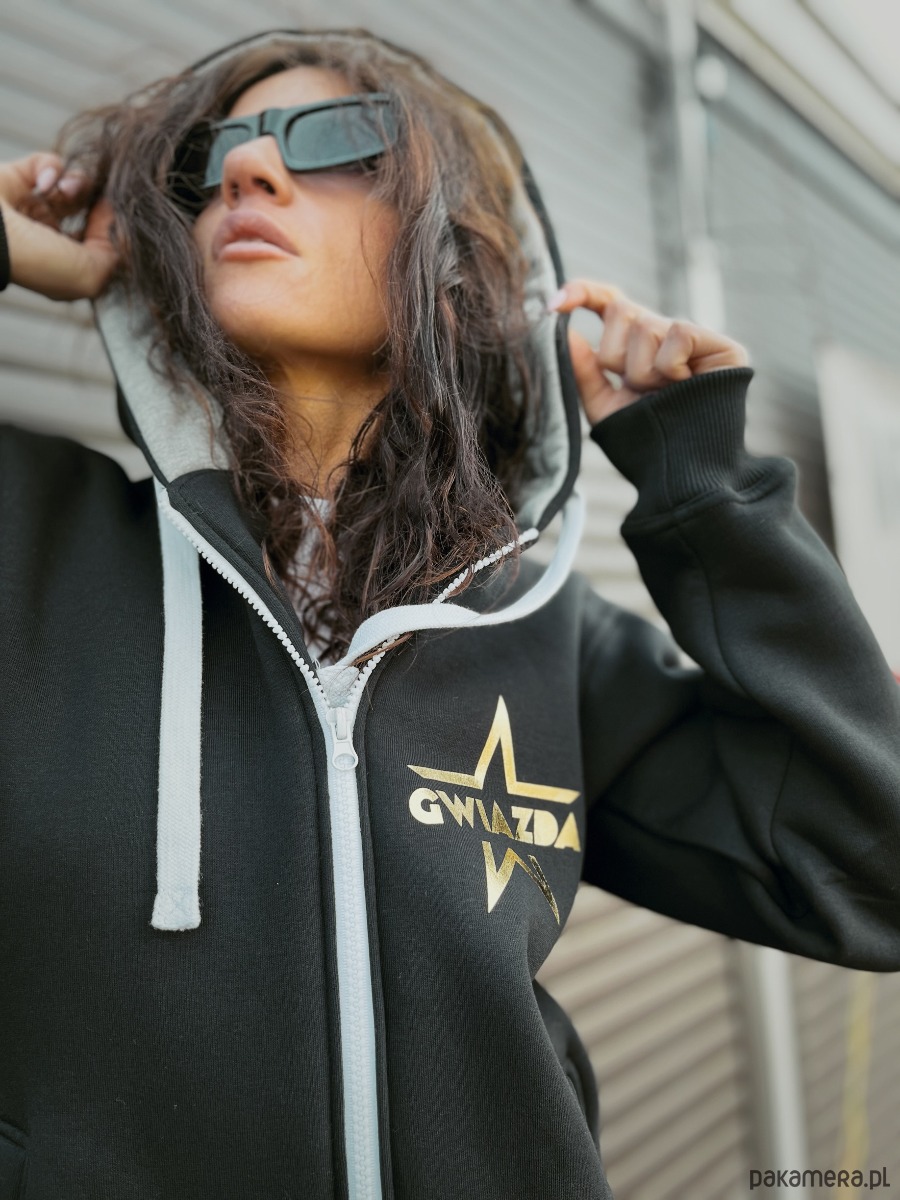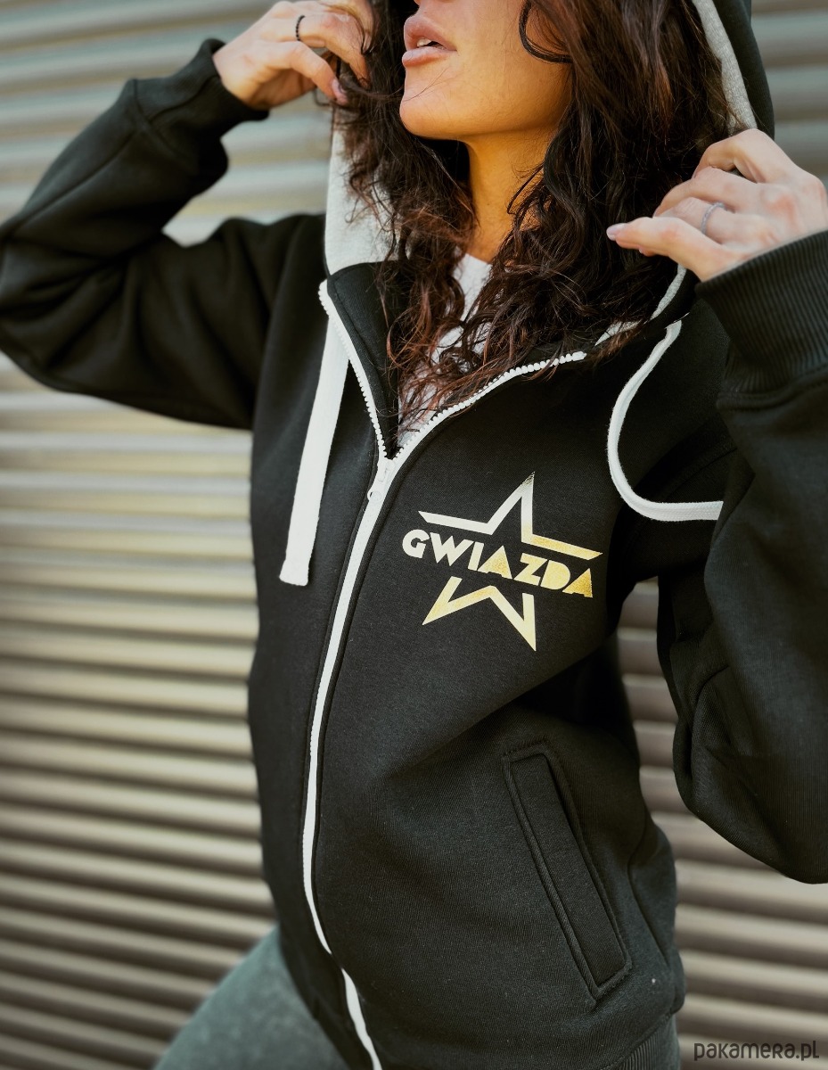 Czarna bluza z kapturem damska Gwiazda na zamek , nie ma sensu tego dłużej ukrywać! Pokaż to ŚWIATU!