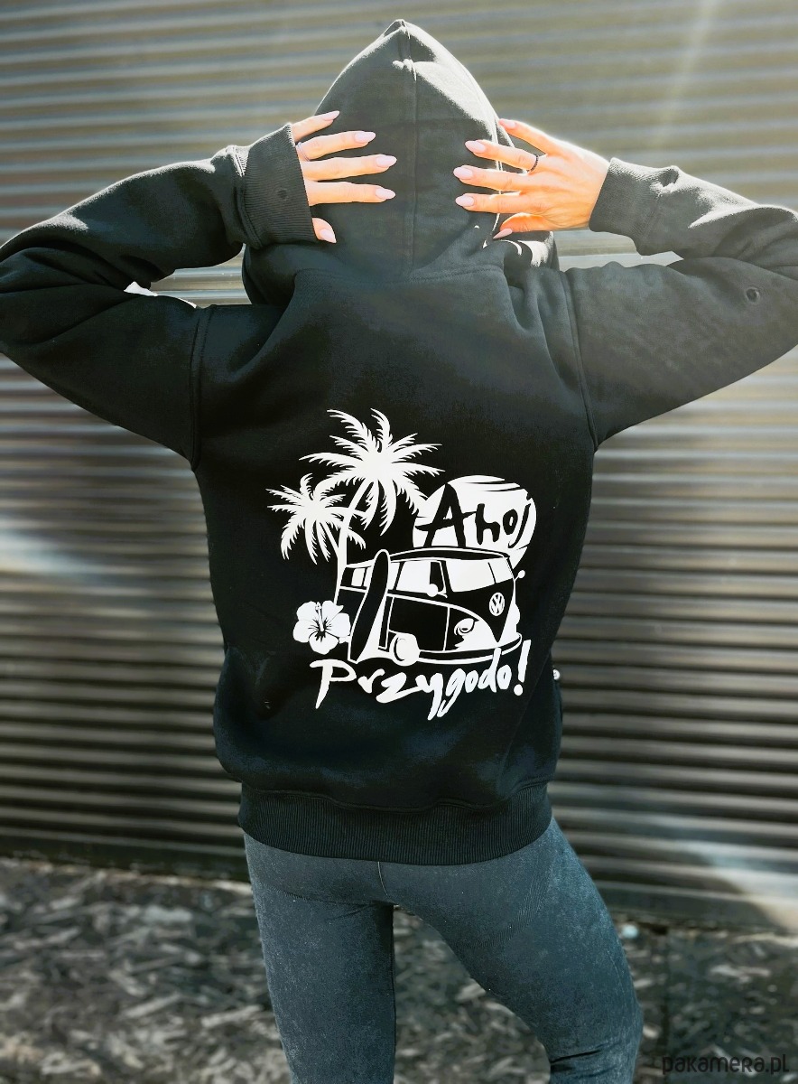 Czarna bluza z kapturem damska Ahoj Przygodo . Ten nadruk to nasz totalny Hit!