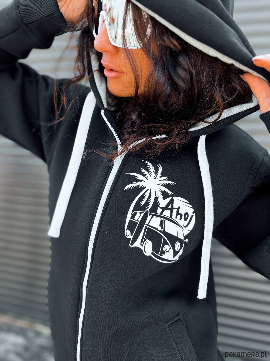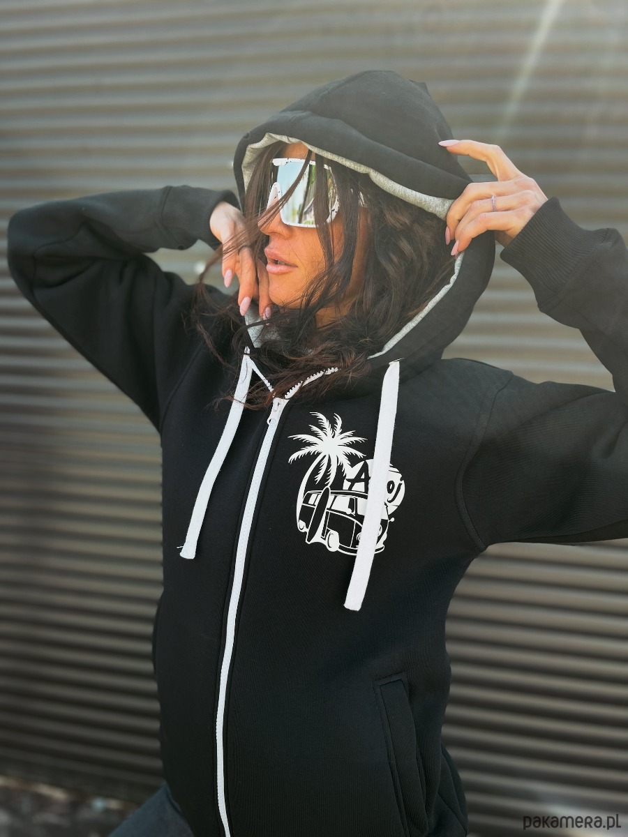 - Typ bluzy: z kapturem, rozpinana, z zamkiem