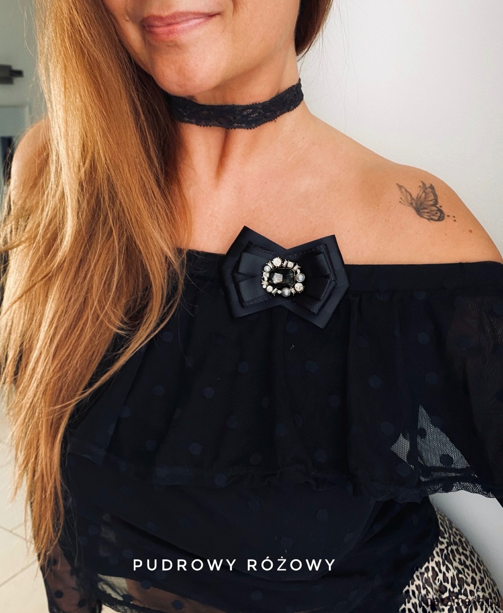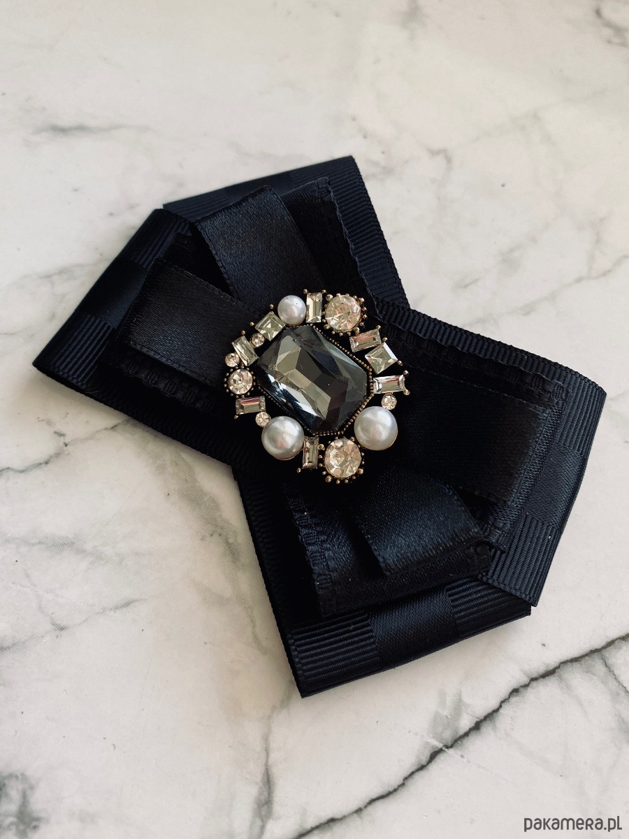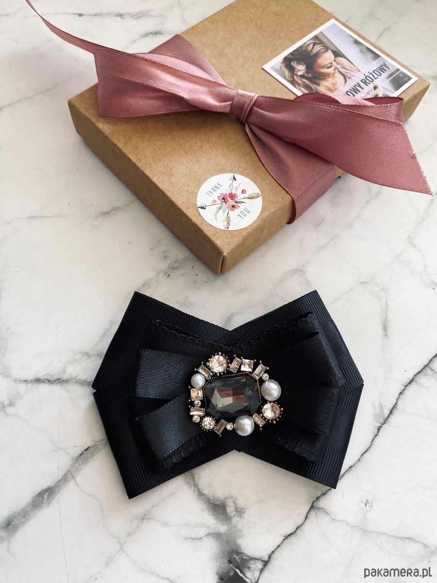 Broszka wykonana z wysokiej jakości taśm i dodatków.