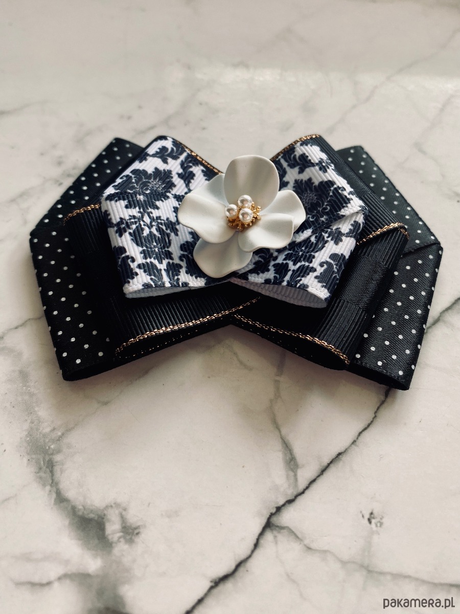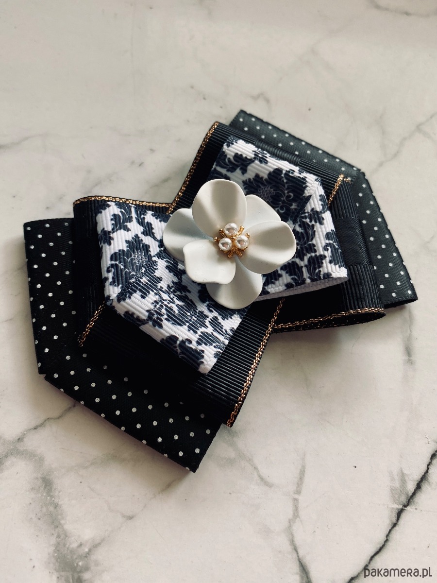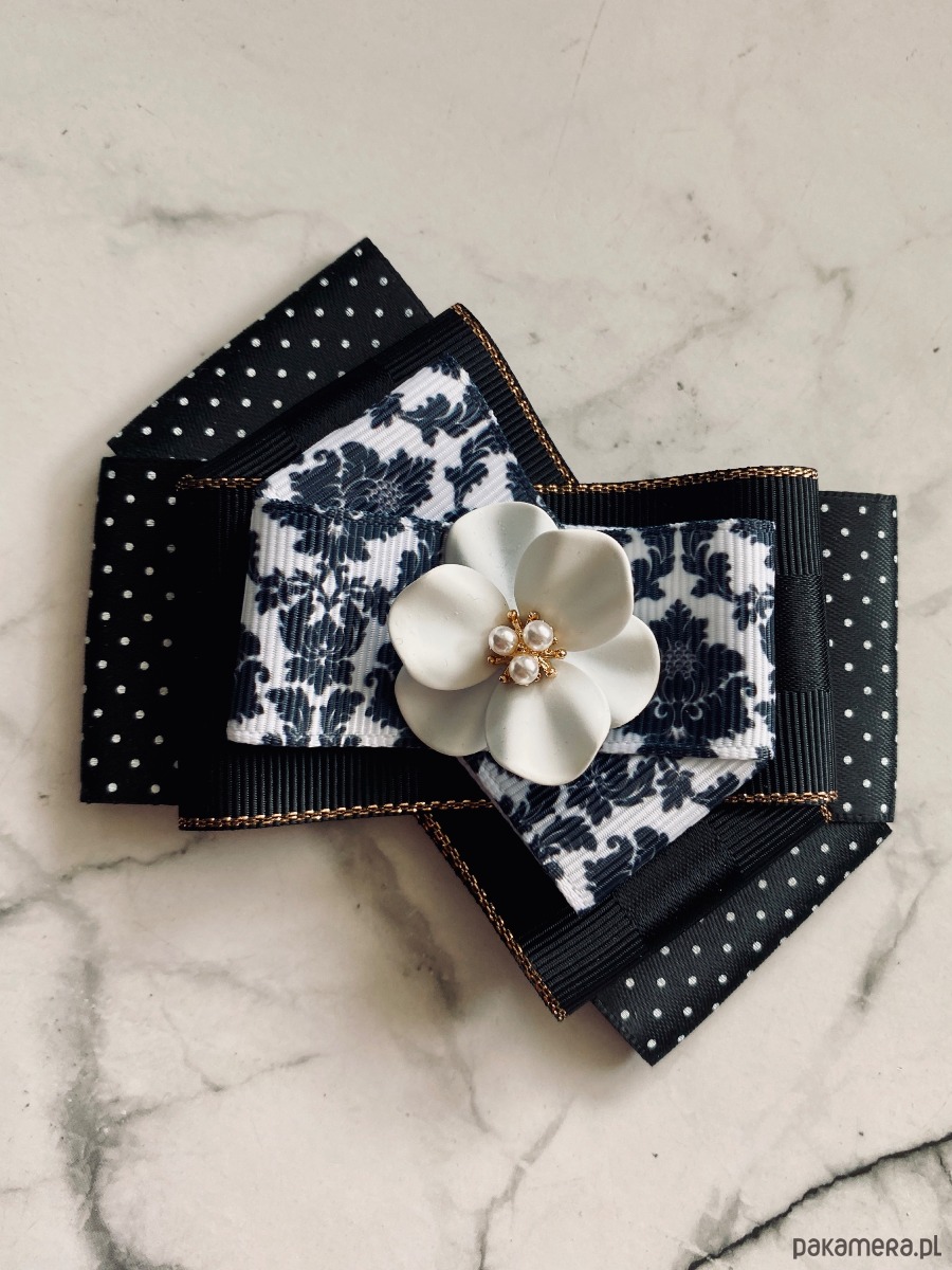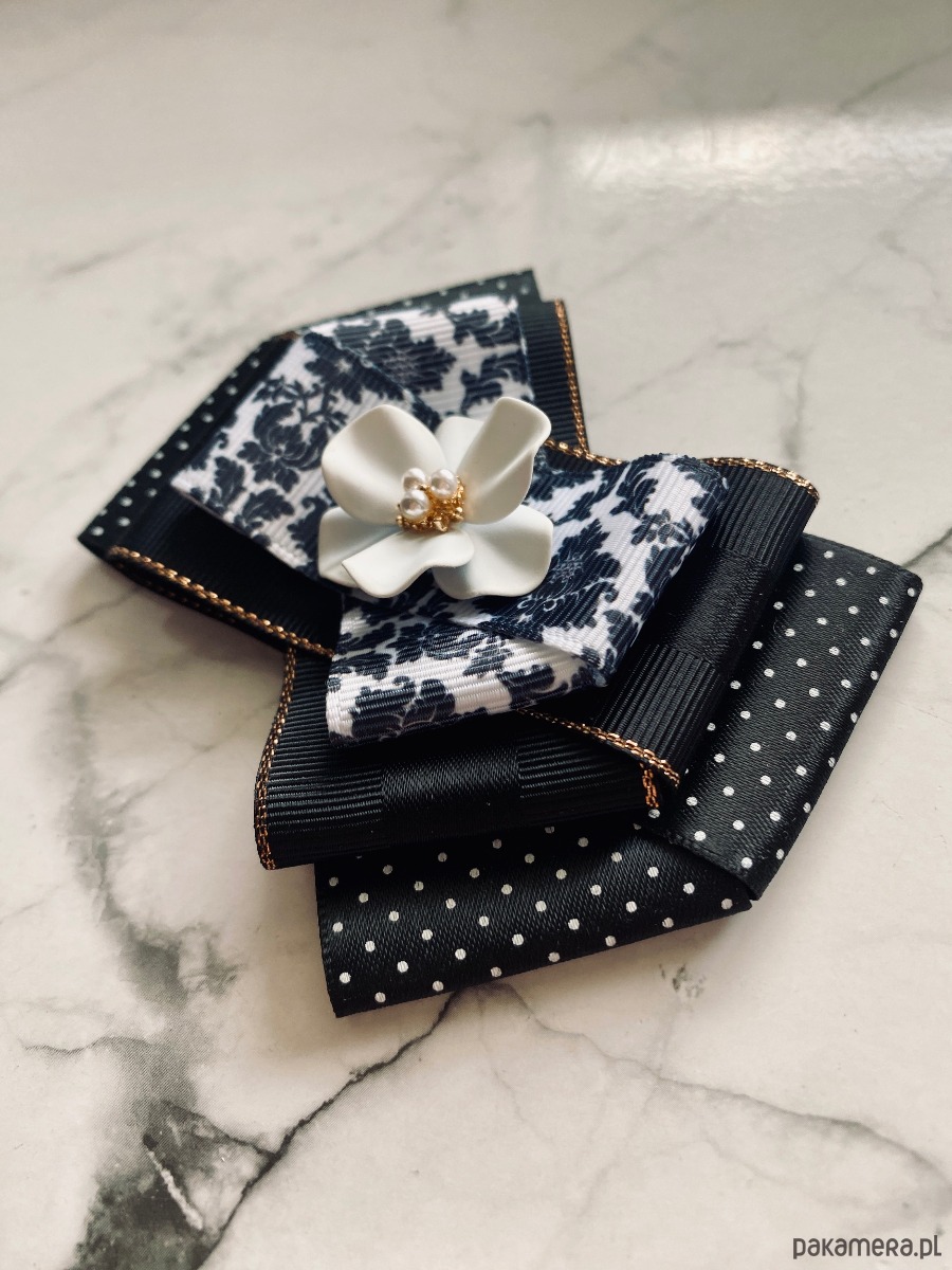 Broszka wykonana z wysokiej jakości taśm i dodatków.