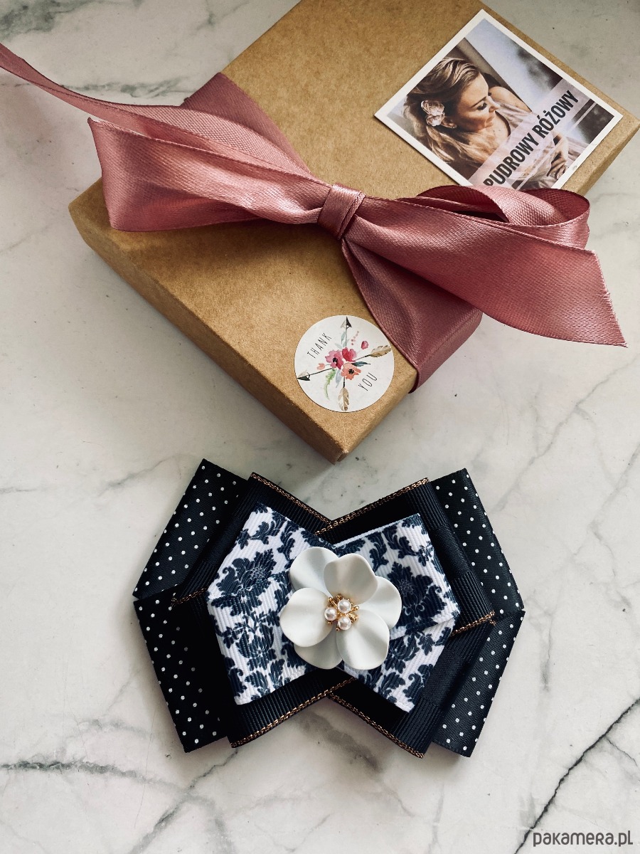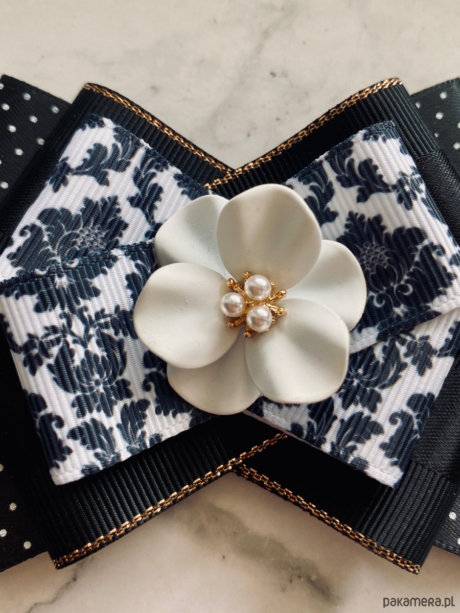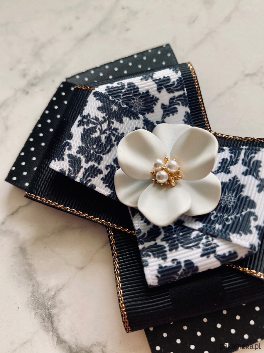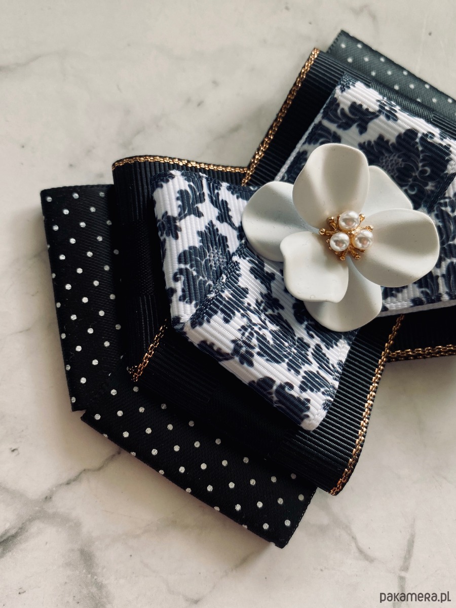 Broszka wykonana z wysokiej jakości taśm i dodatków.