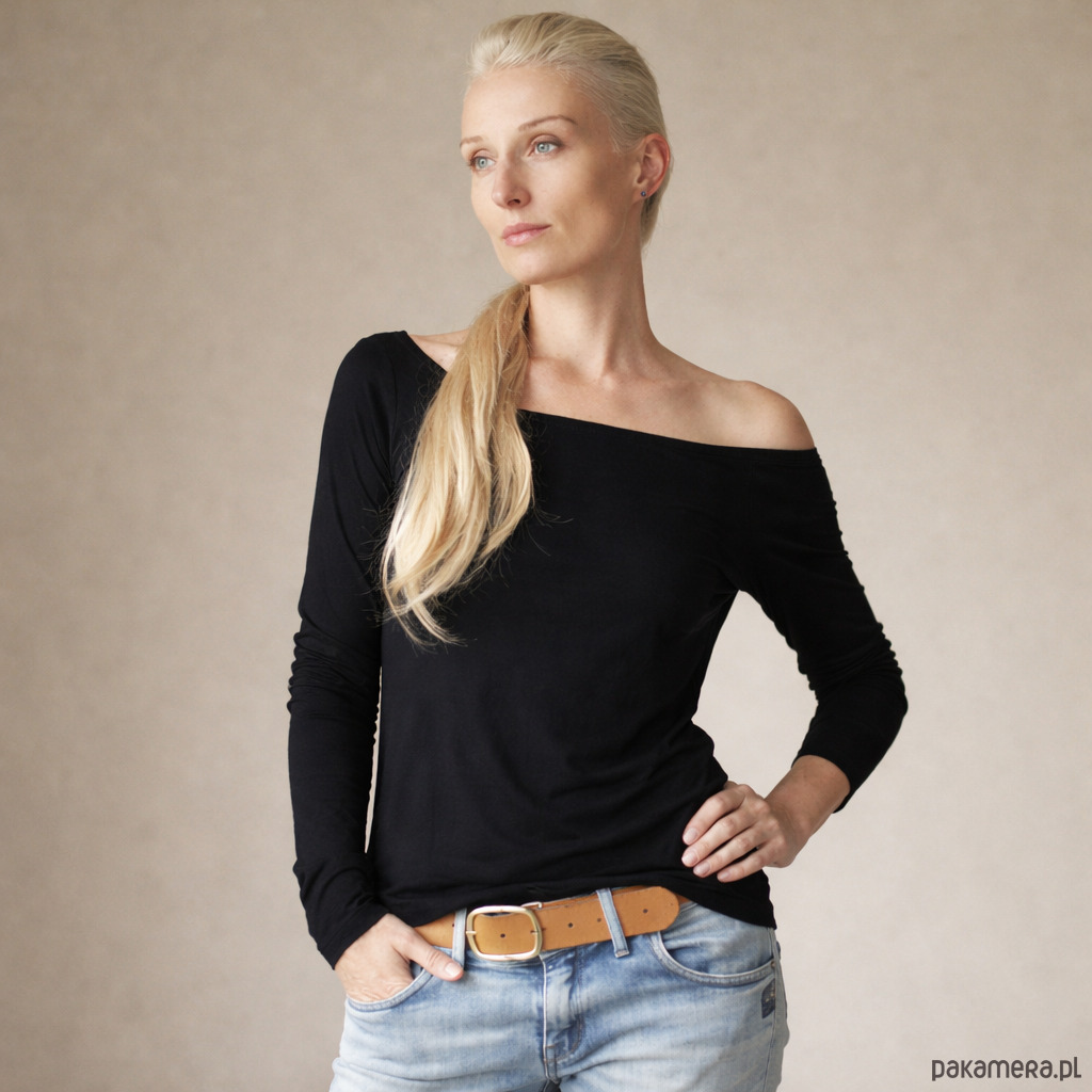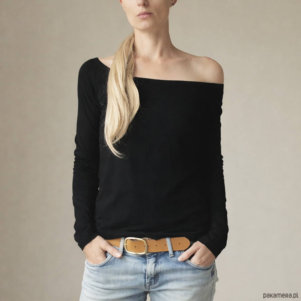 Dzięki domieszce elastanu dekolt lekko się rozciąga i układa tak, jak chcesz – klasycznie, na jedno ramię albo zmysłowo, odsłaniając oba.
