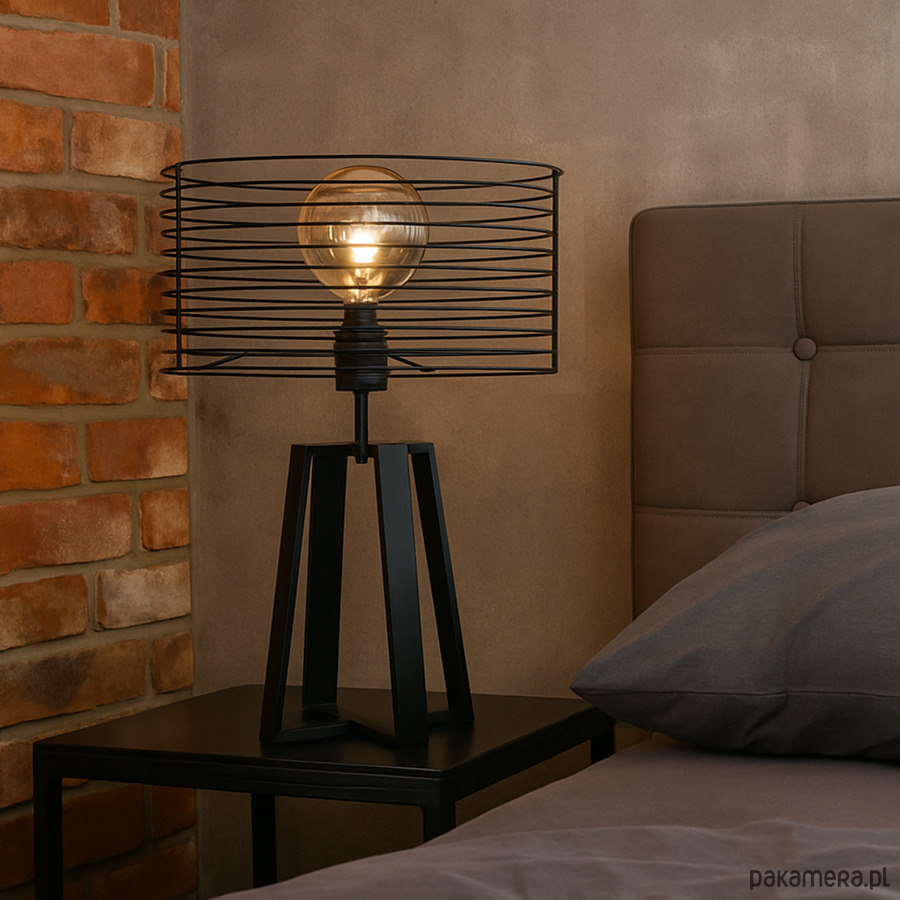Lampa stołowa WOLOS LOFT to nowoczesne oświetlenie industrialne, które doskonale podkreśla charakter wnętrz w stylu loft. Wyróżnia ją geometryczny stelaż oraz designerski, cylindryczny abażur, które nadają aranżacji wyrazistości i nowoczesności. Model ten sprawdzi się zarówno w salonie jako efektowne źródło światła, jak i w sypialni w roli funkcjonalnej lampki nocnej. Lampa ma wymiary 61 × 40 cm i jest przystosowana do żarówki E27 o mocy do 60 W, idealnej także w wersji dekoracyjnej Edison. Dzięki możliwości wyboru koloru podstawy i klosza, WOLOS łatwo dopasować do jasnych i ciemnych aranżacji loftowych.