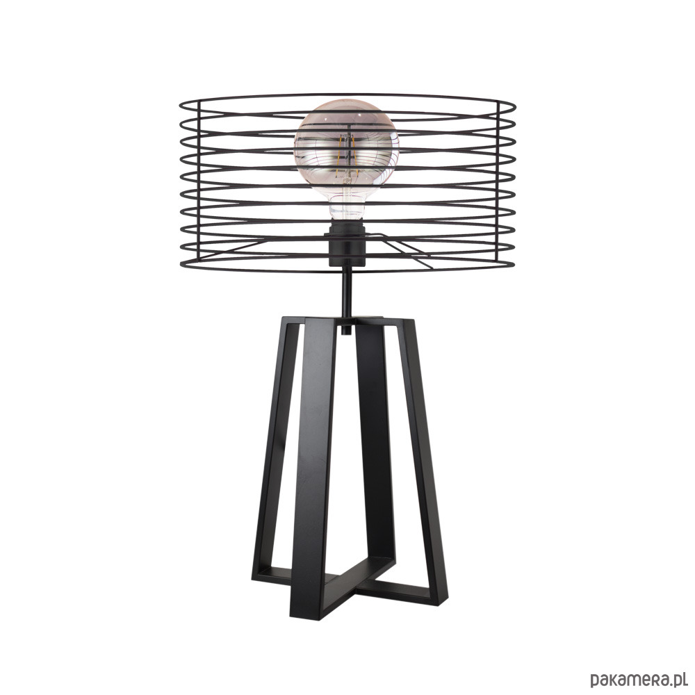 Czarna duża lampa stołowa do salonu sypialni loftowa druciana WOLOS LOFT