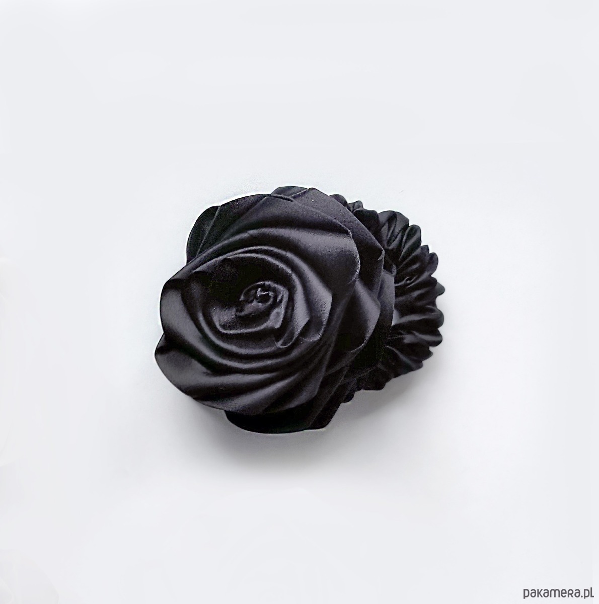 Piękna, frotka do włosów z różą z jedwabiu naturalnego. Zachwycająco wymodelowana, subtelna, lecz niebagatelna ozdoba do włosów, która podbije każdą stylizację. Frotka w czarnym kolorze wkomponuje się w wiele stylizacji codziennych jak i tych na wielkie wyjście.