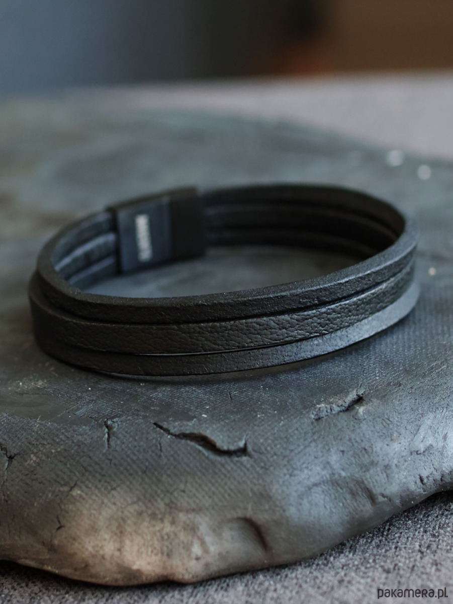Czarna klasyczna Męska Bransoletka ARGENTO