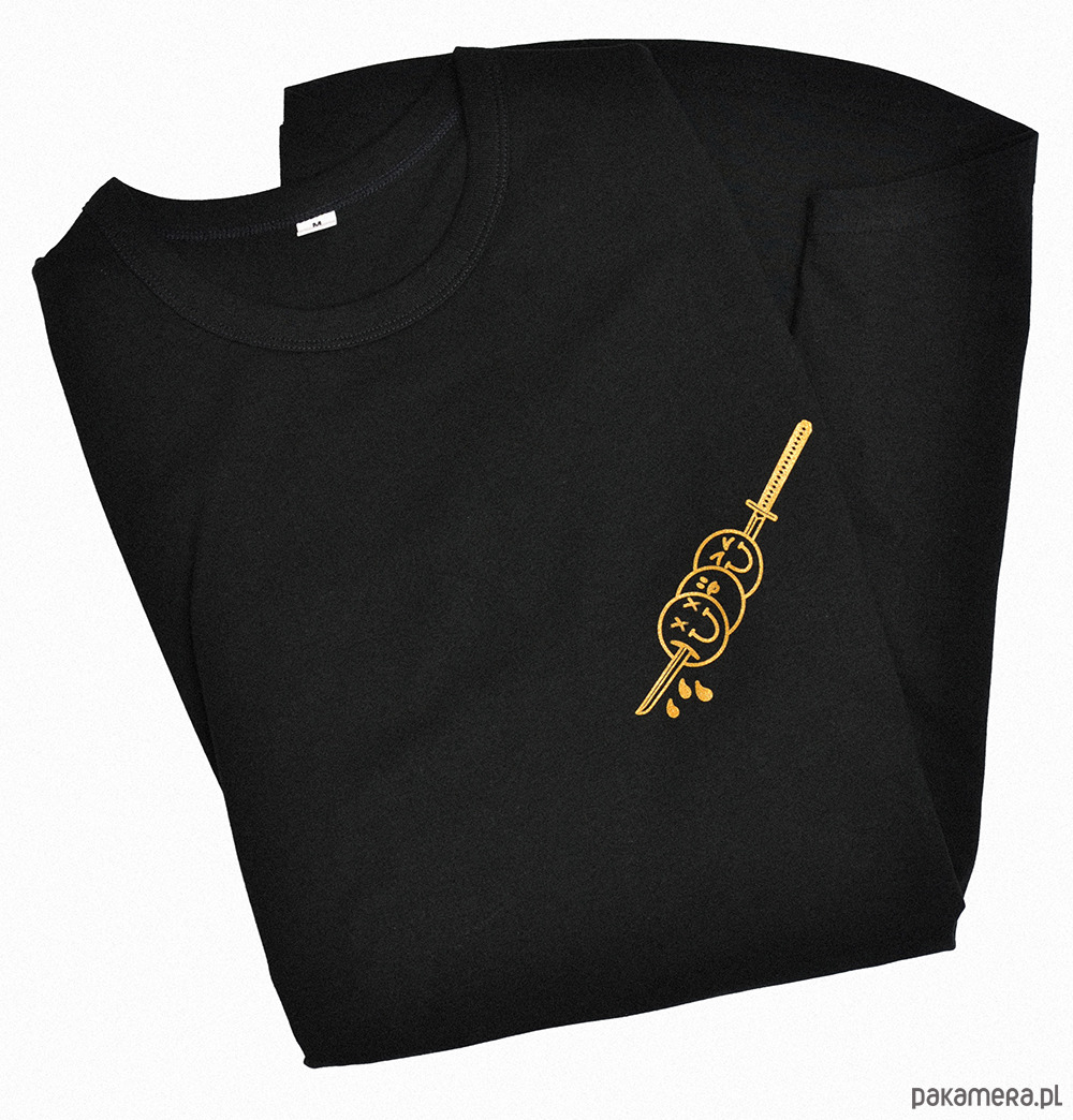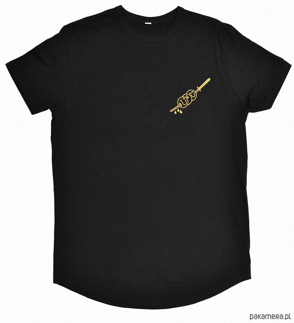 I dwa słowa o t-shircie. Czarny / biały. Krój przedłużany. Nadruk odpowiednio złoty i czarny. W dotyku - bajeczka. 100% bawełny z obłoków. Grafitowy - regular z czarnym nadrukiem.