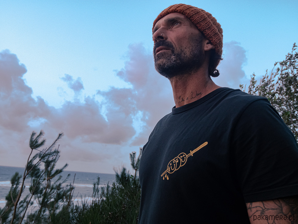 I dwa słowa o t-shircie. Czarny / biały. Krój przedłużany. Nadruk odpowiednio złoty i czarny. W dotyku - bajeczka. 100% bawełny z obłoków. Grafitowy - regular z czarnym nadrukiem.
