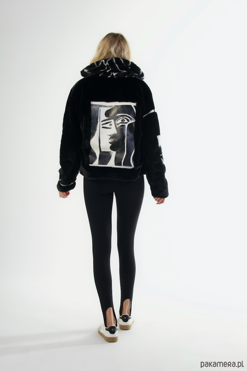 Kurtka ze sztucznego futra BLACK AND WHITE PABLO iest naszą propozycją z artystycznej kolekcji futer. Element obrazu Pabla Picassa ręcznie malowany. Kurtka zapinana na zatrzaski. Posiada przyjemny kołnierzyk oraz wbudowane kieszenie.