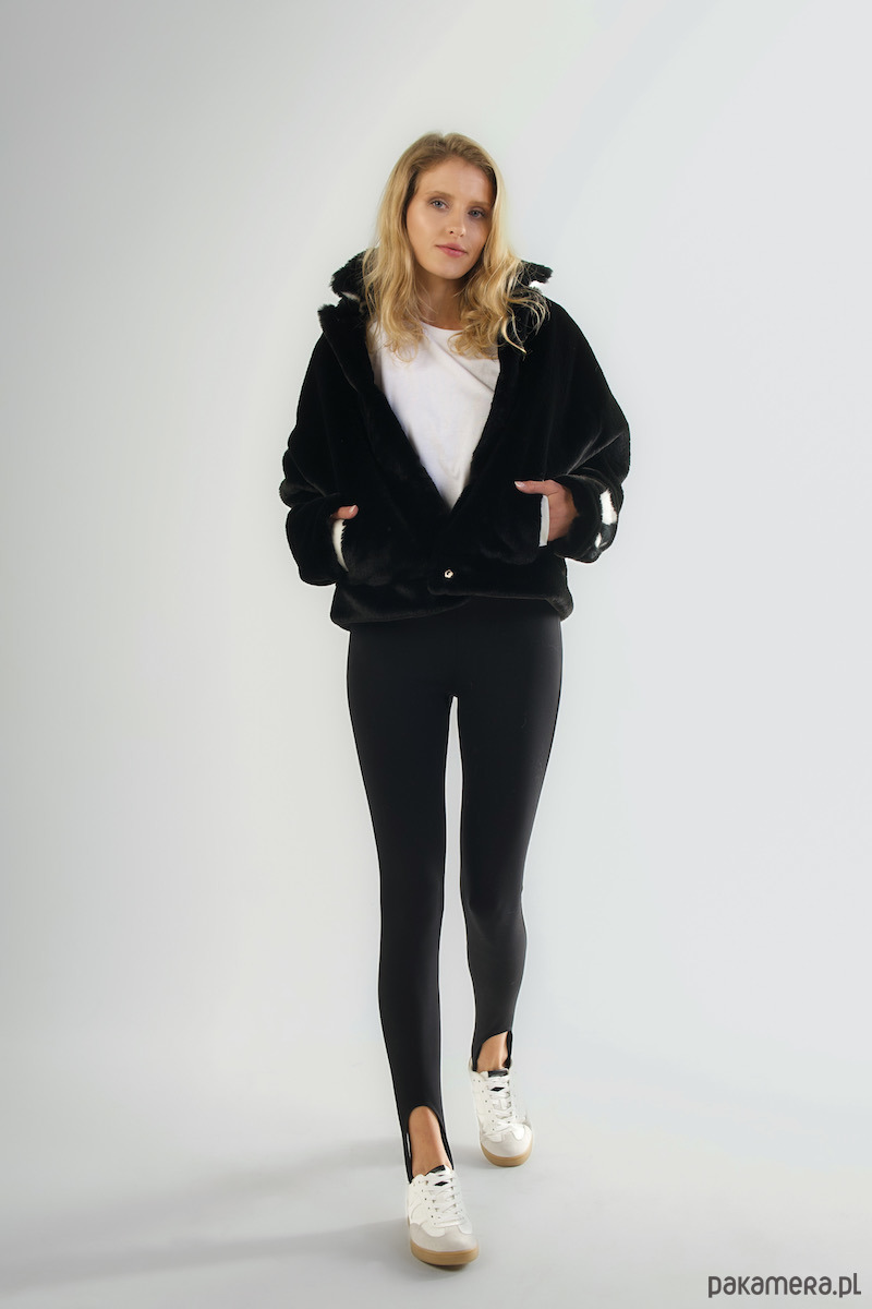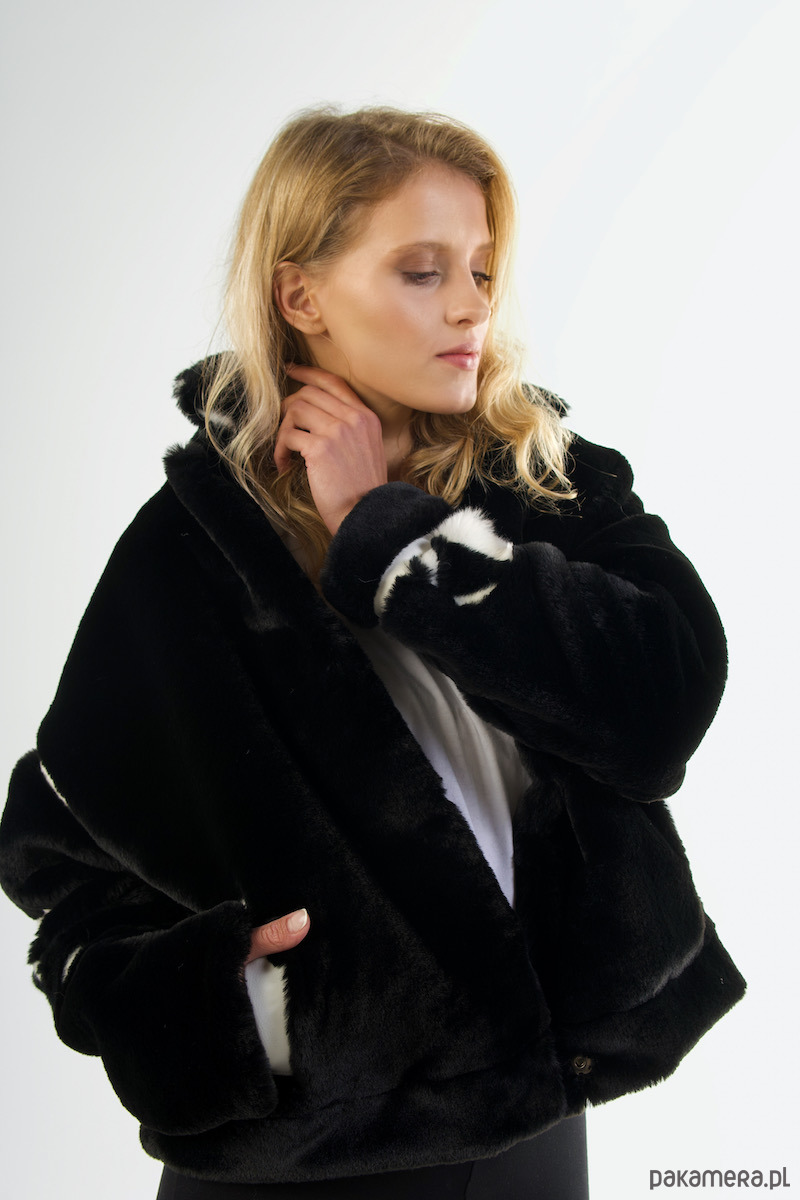 Czarna kurtka ze sztucznego futra BLACK AND WHITE PABLO